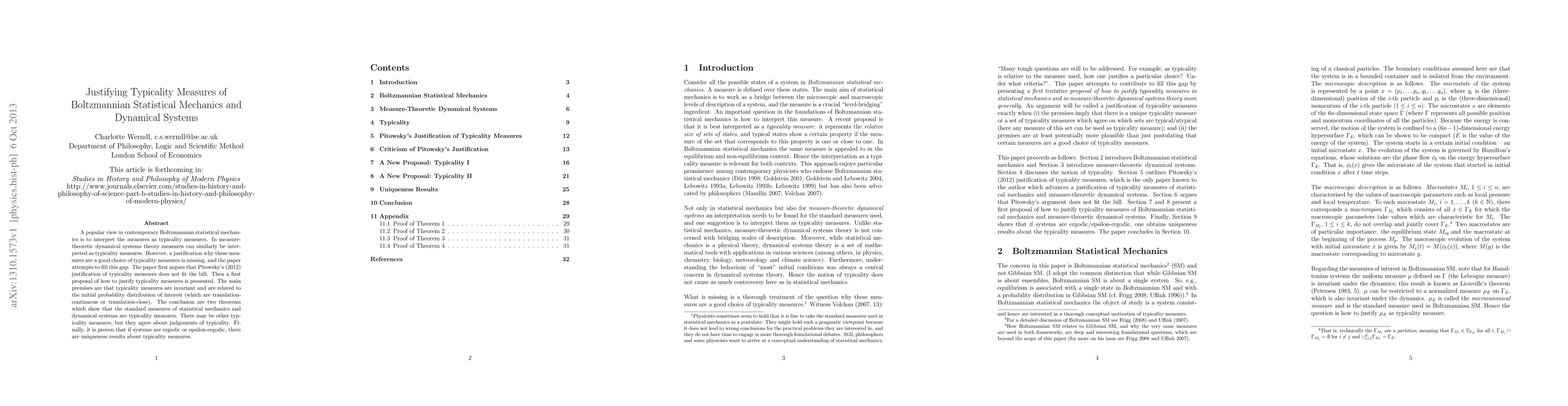 This paper addresses the justification of typicality measures in Boltzmannian statistical mechanics and dynamical systems, proposing that invariance and relation to the initial probability distribution are key criteria. It concludes with theorems proving the standard measures' typicality and uniqueness results for ergodic systems.