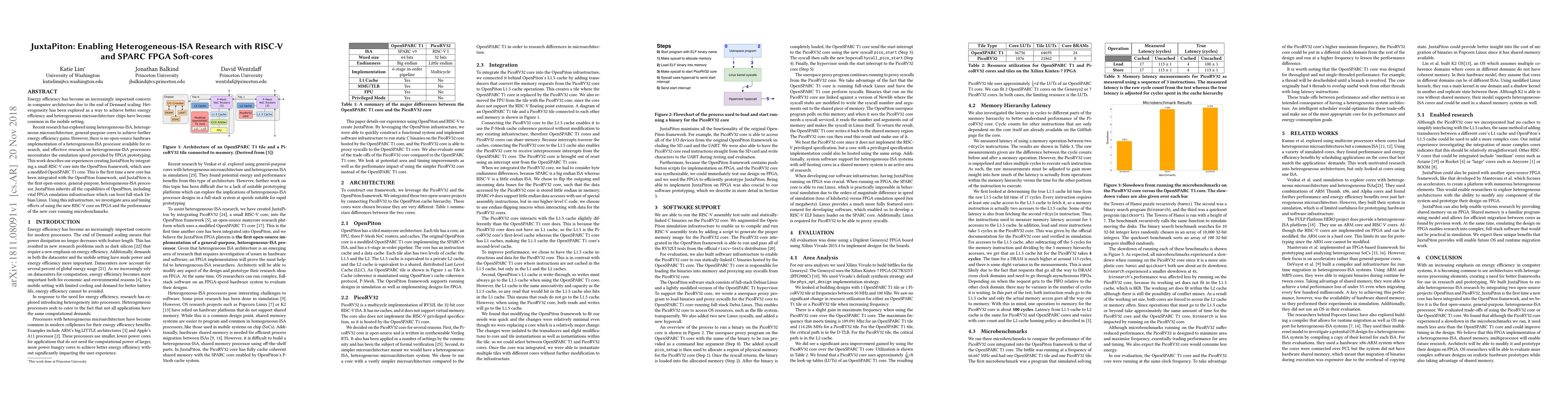 JuxtaPiton integrates a RISC-V core into the OpenPiton framework, which employs a modified OpenSPARC T1 core, creating the first open-source, general-purpose, heterogeneous-ISA processor for research. This work investigates the area, timing, and performance impacts of the new RISC-V core on FPGA.