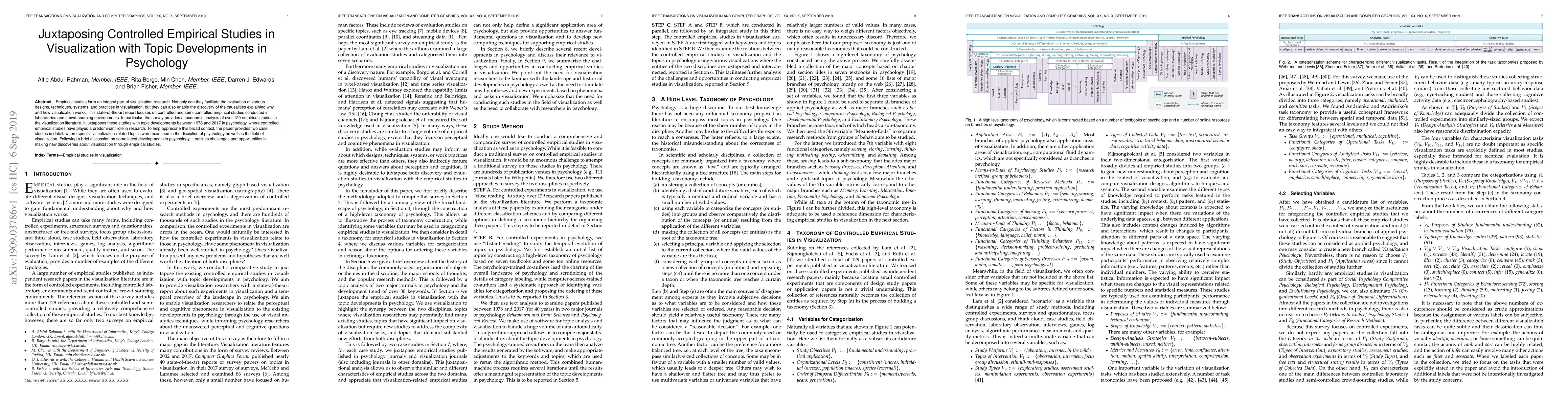 This paper reviews 129 empirical studies in visualization research and their connections to psychology studies between 1978 and 2017, highlighting challenges and opportunities for new discoveries.