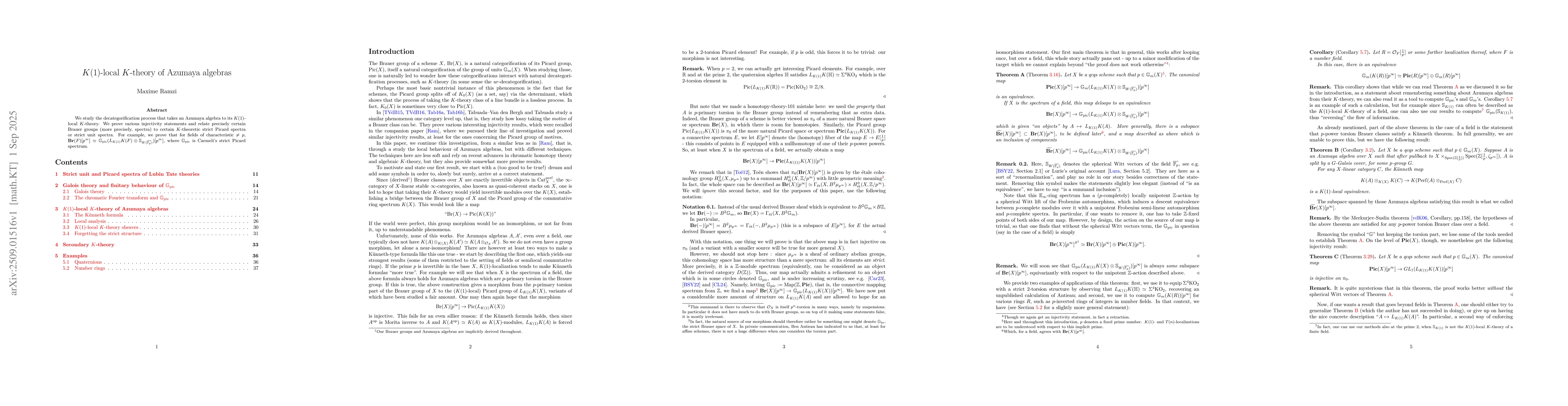We study the decategorification process that takes an Azumaya algebra to its $K(1)$-local $K$-theory. We prove various injectivity statements and relate precisely certain Brauer groups (more precisely, spectra) to certain $K$-theoretic strict Picard spectra or strict unit spectra. For example, we prove that for fields $F$ of characteristic $\neq p$, $\mathbf{Br}(F)[p^{\infty}] \simeq \mathbb{G}_{\mathrm{pic}}(L_{K(1)}K(F)\otimes \mathbb{S}_{W(\overline{\mathbb F_p})})[p^\infty]$ where $\mathbb{G}_{\mathrm{pic}}$ is Carmeli's strict Picard spectrum, and $\mathbf{Br}(F)$ denotes the Brauer space of the field $F$.