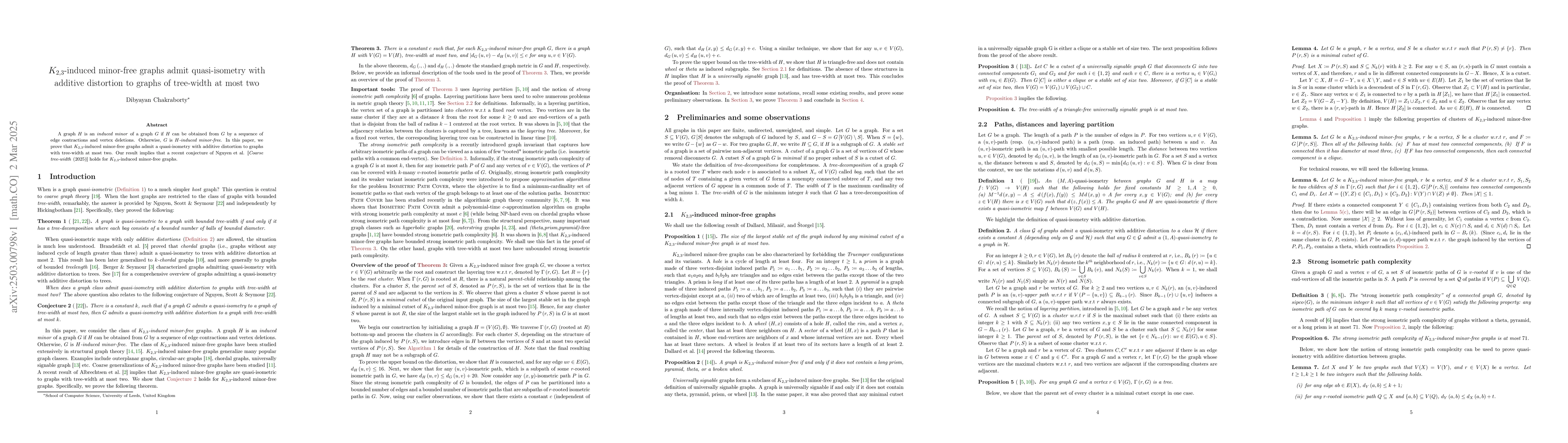 The paper combines layering partition techniques with strong isometric path complexity to prove quasi-isometry for $K_{2,3}$-induced minor-free graphs with additive distortion to graphs of tree-width at most two.