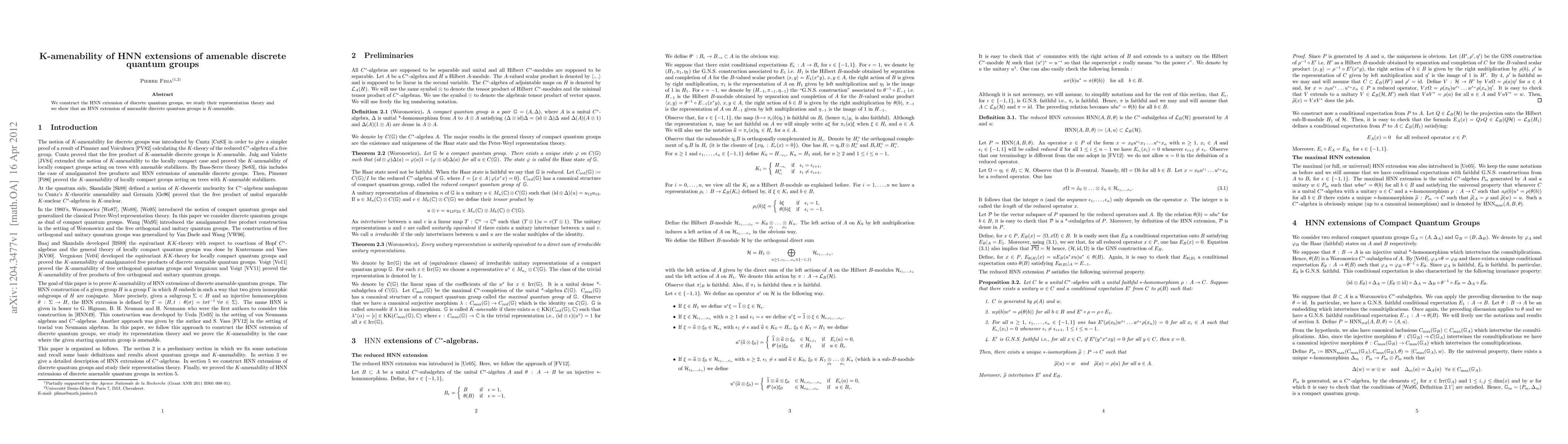 Summary: This paper constructs HNN extensions of amenable discrete quantum groups and examines their representation theory. It demonstrates that such extensions retain K-amenability, a property significant in the study of quantum groups.