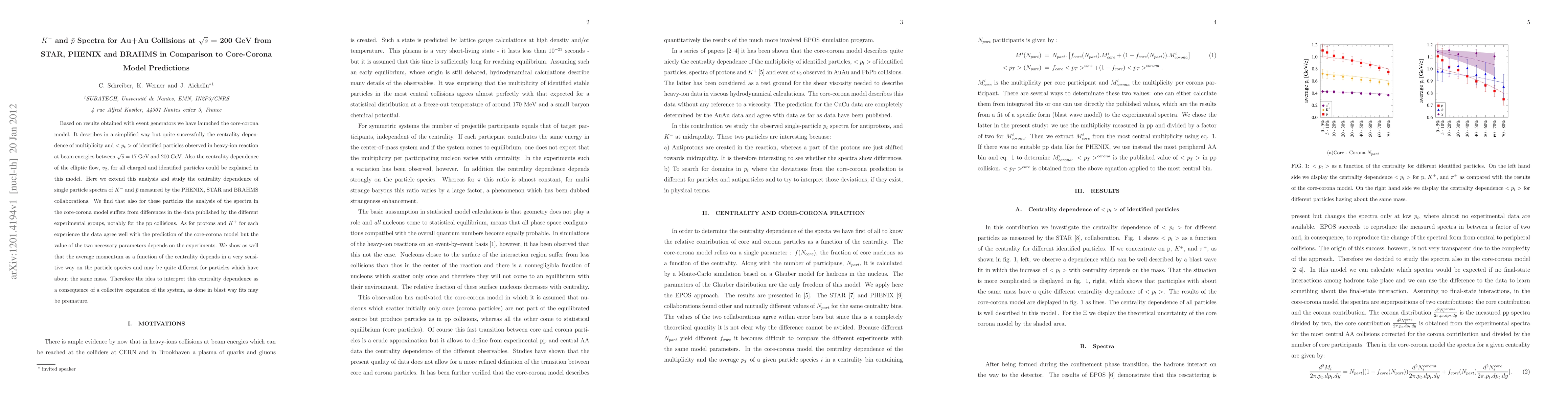 This paper compares $K^-$ and $\bar p$ spectra from Au+Au collisions at $\sqrt{s}$ = 200 GeV measured by STAR, PHENIX, and BRAHMS with predictions from the core-corona model. The model successfully explains centrality dependence of particle multiplicity and elliptic flow but shows discrepancies among different experimental data, suggesting that the centrality dependence of average momentum may not solely result from collective expansion.
