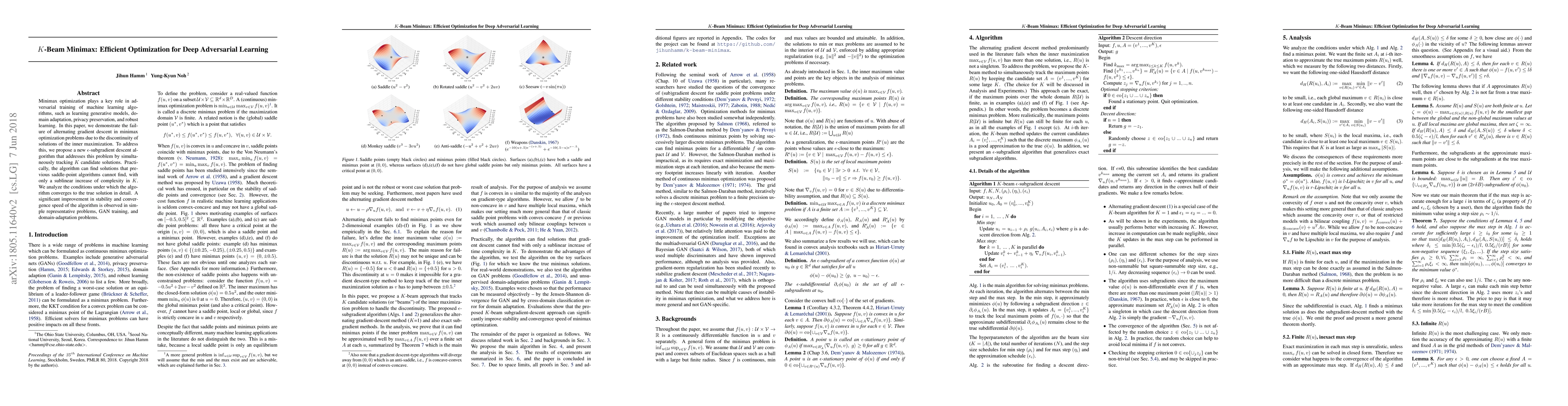 This research introduces K-Beam Minimax, a novel epsilon-subgradient descent algorithm addressing the failure of alternating gradient descent in minimax optimization problems due to solution discontinuity. The method simultaneously tracks K candidate solutions, improving stability and convergence speed in various applications like GAN training and domain adaptation, with only a sublinear increase in complexity.