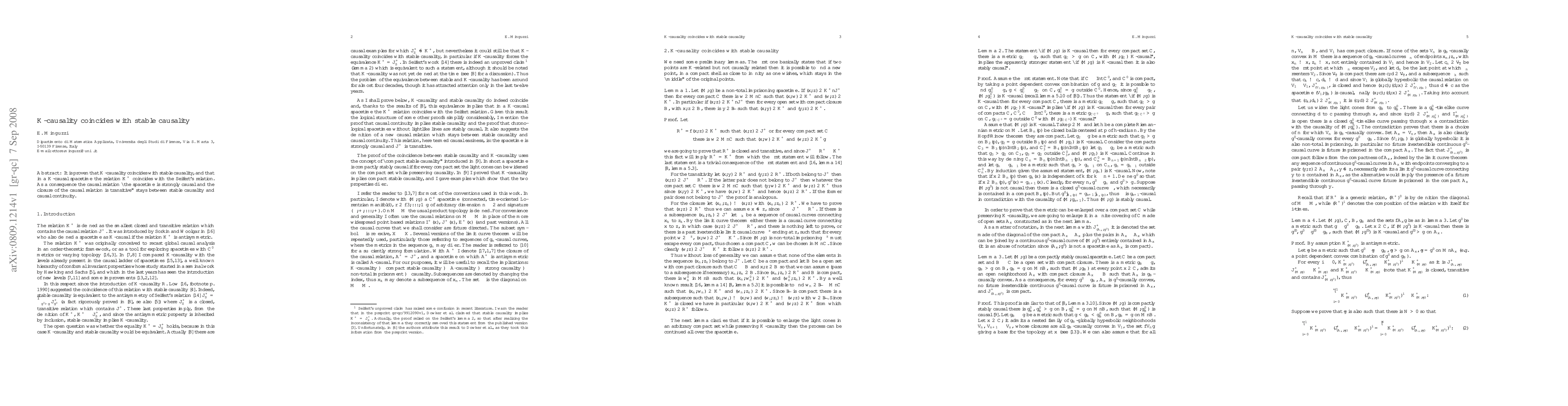 This paper proves that K-causality is equivalent to stable causality, establishing that in K-causal spacetimes, the K^+ relation aligns with Seifert's relation, thereby situating strong causal relations within the bounds of stable causality and causal continuity.