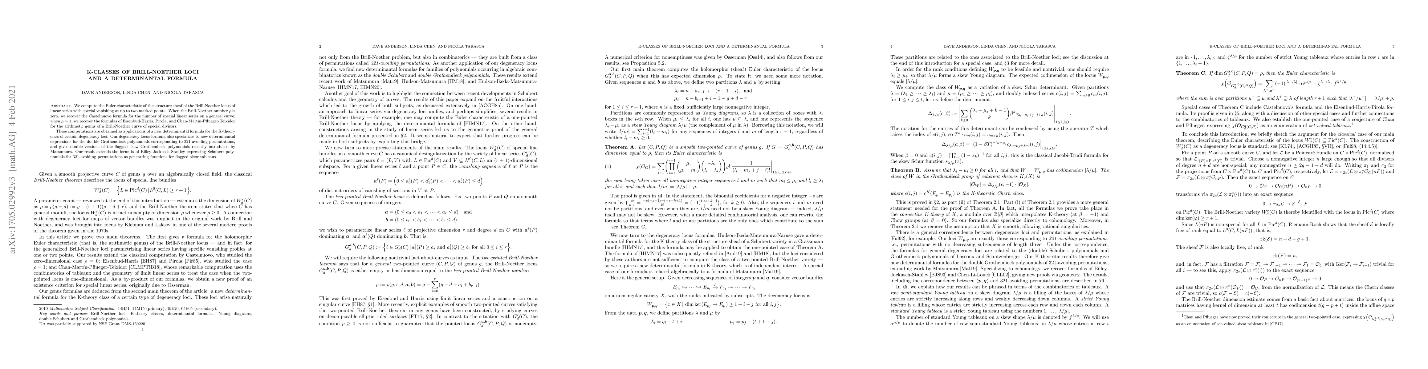 This paper computes the Euler characteristic of Brill-Noether loci for linear series and derives determinantal formulas for K-theory classes of degeneracy loci, extending previous results for arithmetic genus formulas and introducing new expressions for Grothendieck polynomials and flagged skew Grothendieck polynomials.