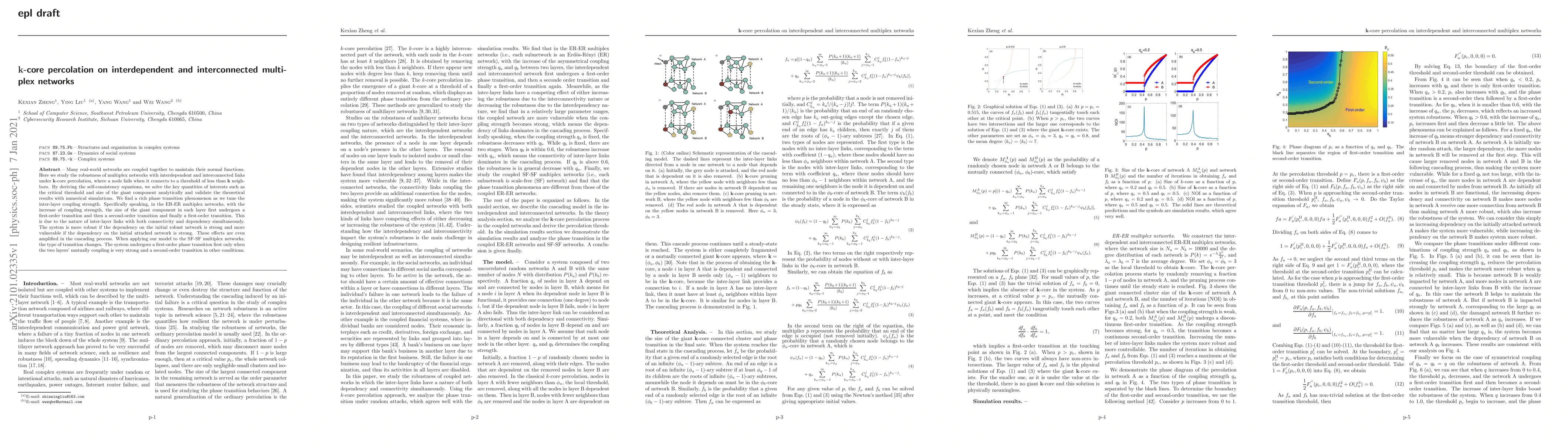 This paper investigates the robustness of interdependent multiplex networks under k-core percolation, deriving analytical solutions for critical thresholds and giant component sizes. It reveals complex phase transitions influenced by inter-layer coupling strength, showing different transition behaviors in ER-ER and SF-SF multiplex networks.