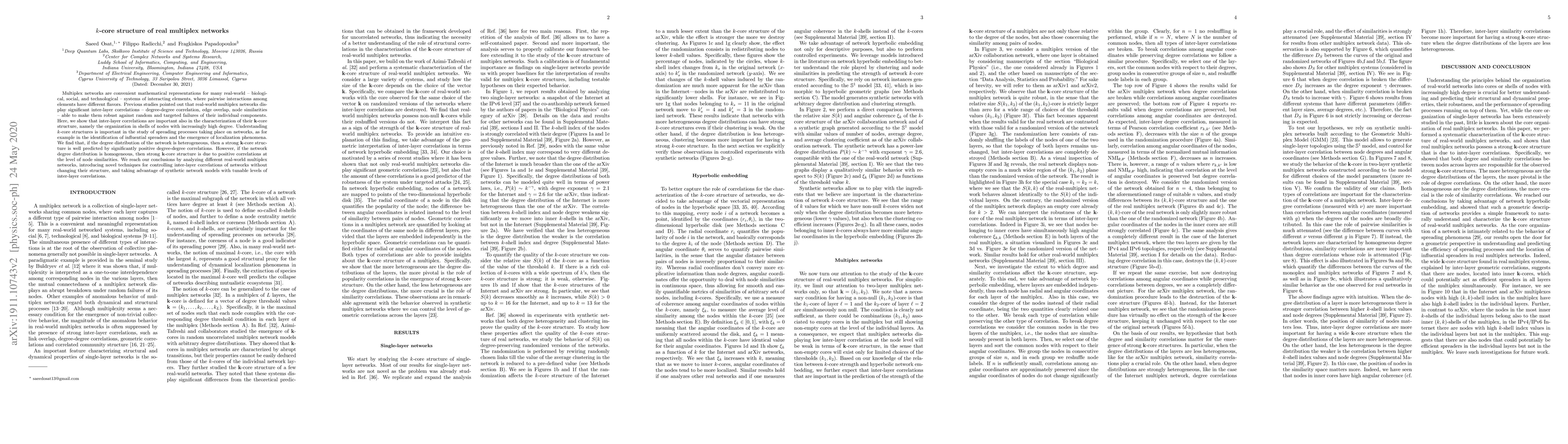 This paper investigates the $k$-core structure of real-world multiplex networks, showing that inter-layer correlations significantly influence this structure. It finds that heterogeneous degree distributions predict strong $k$-cores via degree-degree correlations, while homogeneous distributions rely on node similarity correlations.