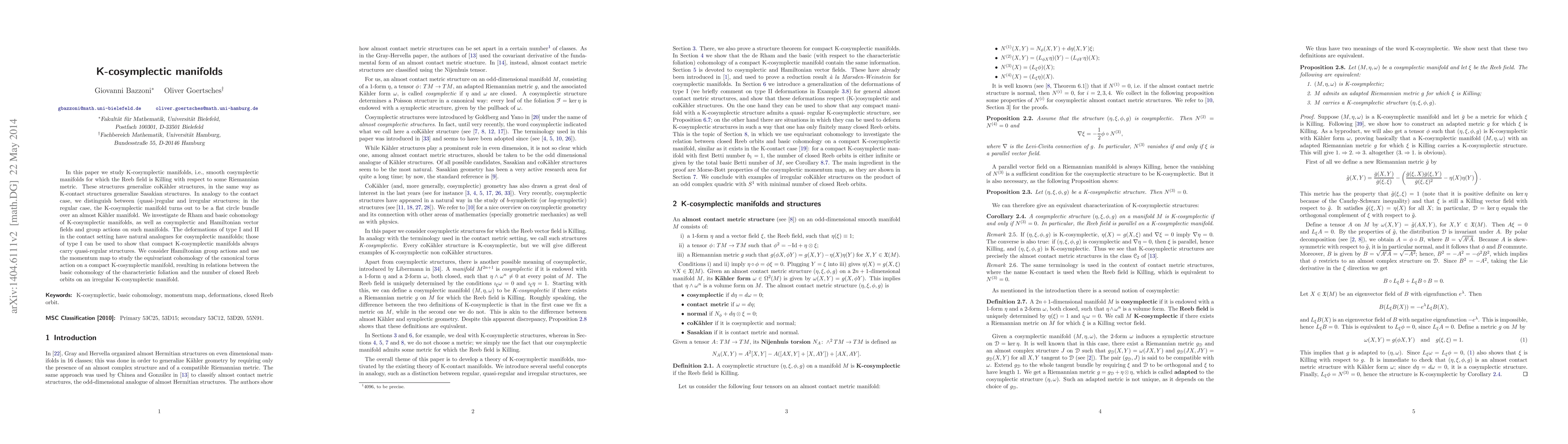 This paper studies K-cosymplectic manifolds, which generalize coKähler structures by having a Reeb field that is Killing with respect to a Riemannian metric. It explores their de Rham and basic cohomology, cosymplectic and Hamiltonian vector fields, and investigates the existence of quasi-regular structures, revealing connections between the equivariant cohomology and the number of closed Reeb orbits.