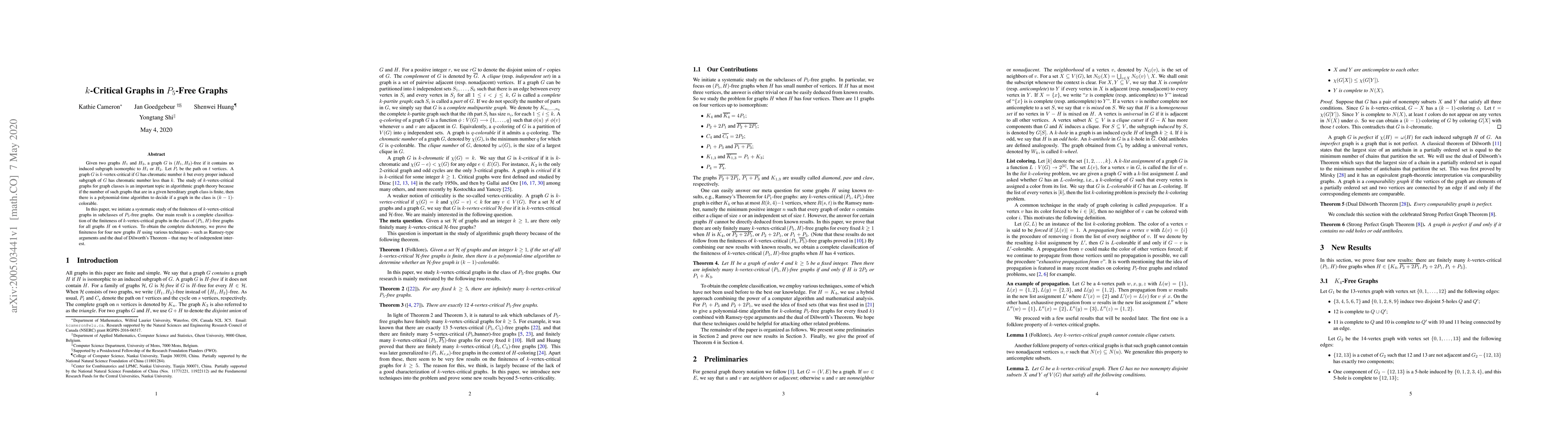The paper systematically studies the finiteness of k-vertex-critical graphs in subclasses of P5-free graphs, providing a complete classification for (P5,H)-free graphs with H having 4 vertices using techniques like Ramsey-type arguments and Dilworth's Theorem dual.