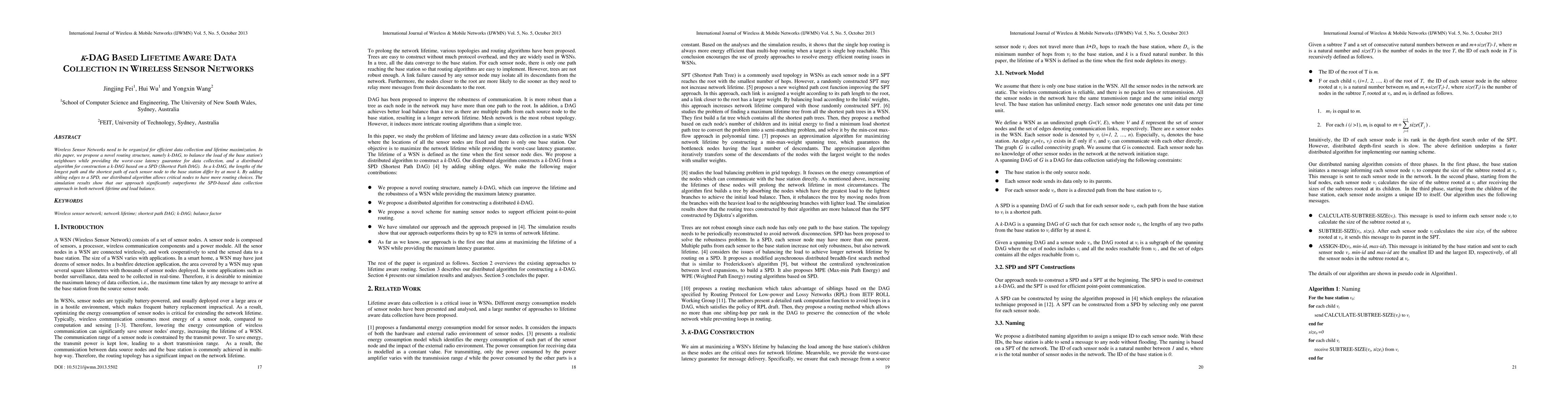 This paper proposes a k-DAG routing structure to optimize data collection in wireless sensor networks, ensuring balanced load and extended network lifetime. The k-DAG algorithm enhances routing flexibility and outperforms traditional SPD-based methods in simulations for both network longevity and load distribution.
