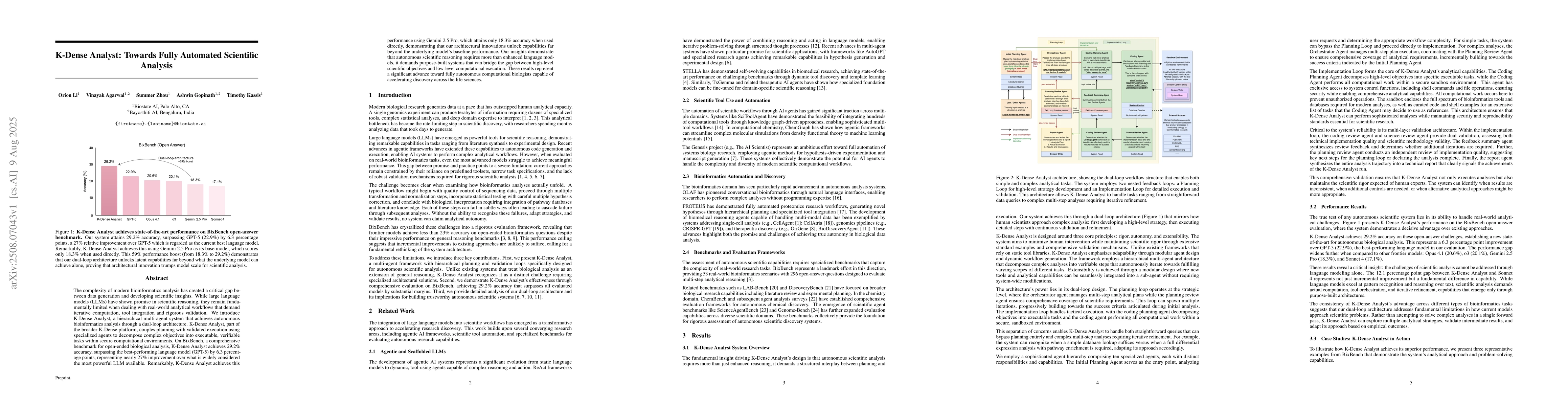 The research introduces K-Dense Analyst, a hierarchical multi-agent system utilizing a dual-loop architecture for autonomous bioinformatics analysis, validated on BixBench, a comprehensive benchmark for open-ended biological analysis.