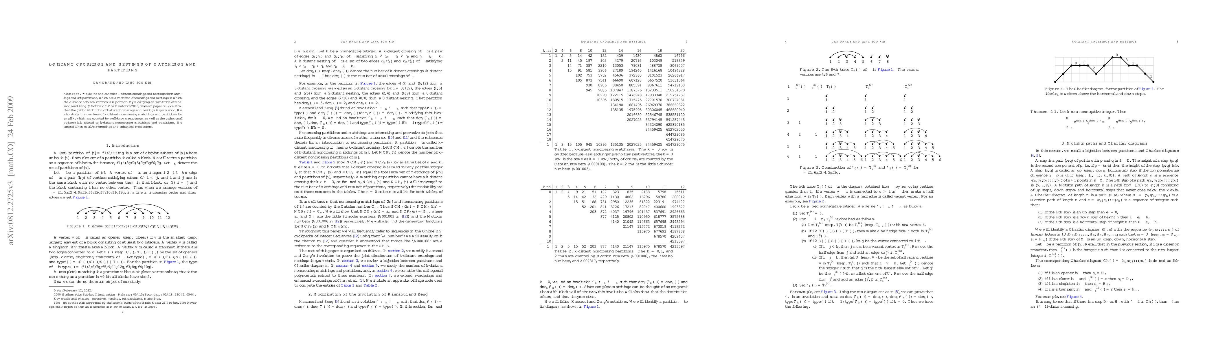 This paper introduces k-distant crossings and nestings for matchings and partitions, emphasizing the significance of vertex distance. It demonstrates the symmetry in their joint distribution via a modified Kasraoui and Zeng involution and explores counts and orthogonal polynomials related to k-distant noncrossing structures for small k.