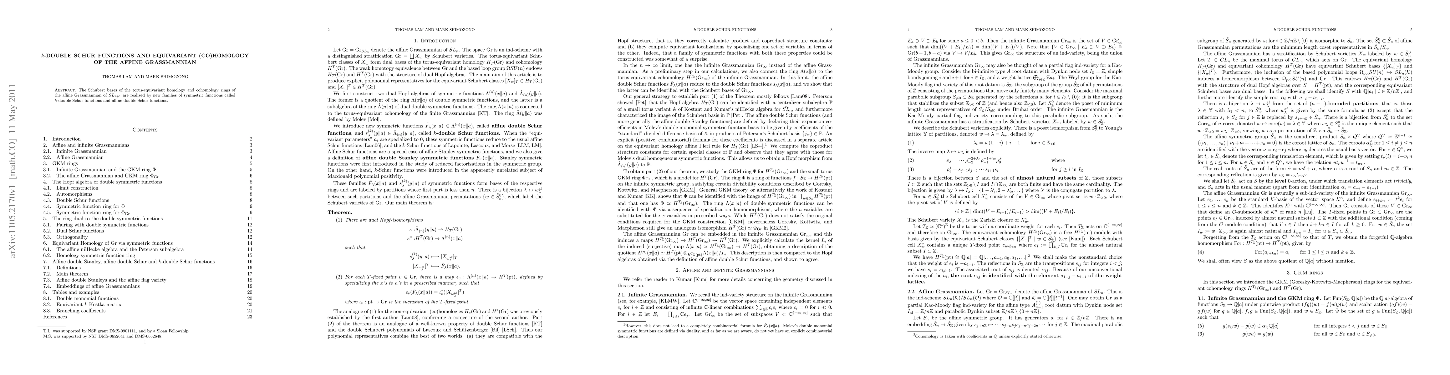 The Schubert bases of the torus-equivariant homology and cohomology rings of the affine Grassmannian of the special linear group are realized by new families of symmetric functions called k-double Schur functions and affine double Schur functions.