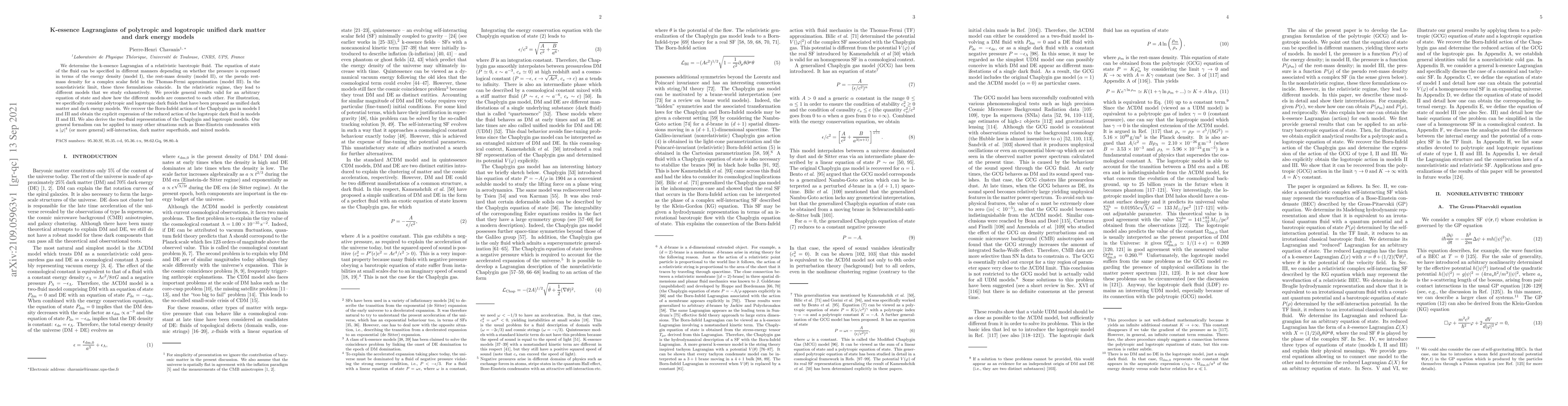 This paper explores the k-essence Lagrangians for relativistic barotropic fluids, detailing three distinct formulations based on different expressions of pressure relative to energy density, rest-mass density, and pseudo rest-mass density. It provides a comprehensive study of these models, particularly in the context of polytropic and logotropic unified dark matter and dark energy models, and demonstrates their connections and applications to various physical phenomena.