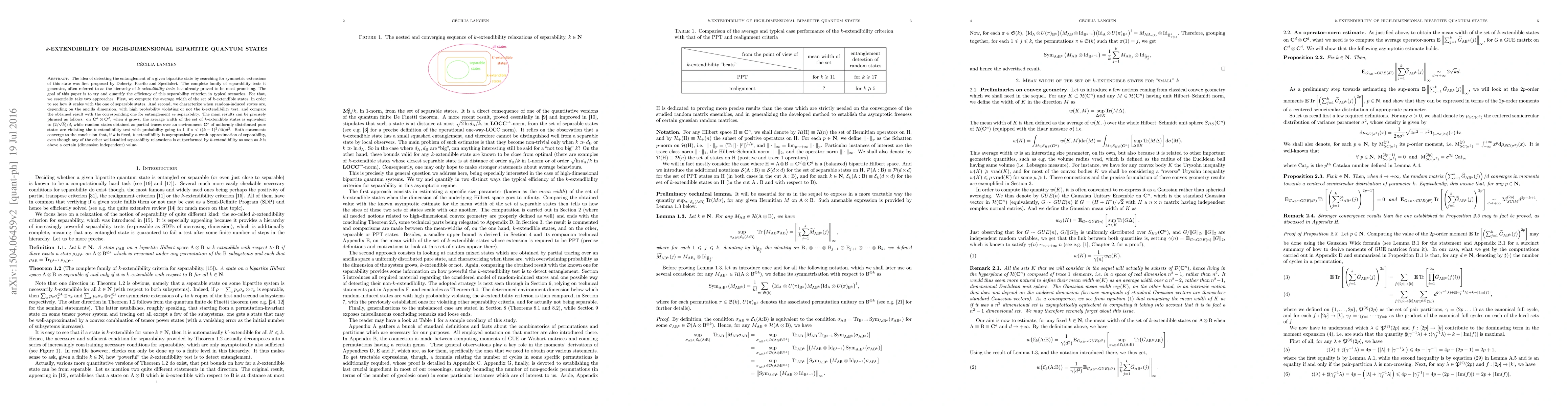 A study investigates the efficiency of a separability criterion based on k-extendibility tests for detecting entanglement in high-dimensional bipartite quantum states, finding that k-extendibility is an asymptotic approximation of separability.