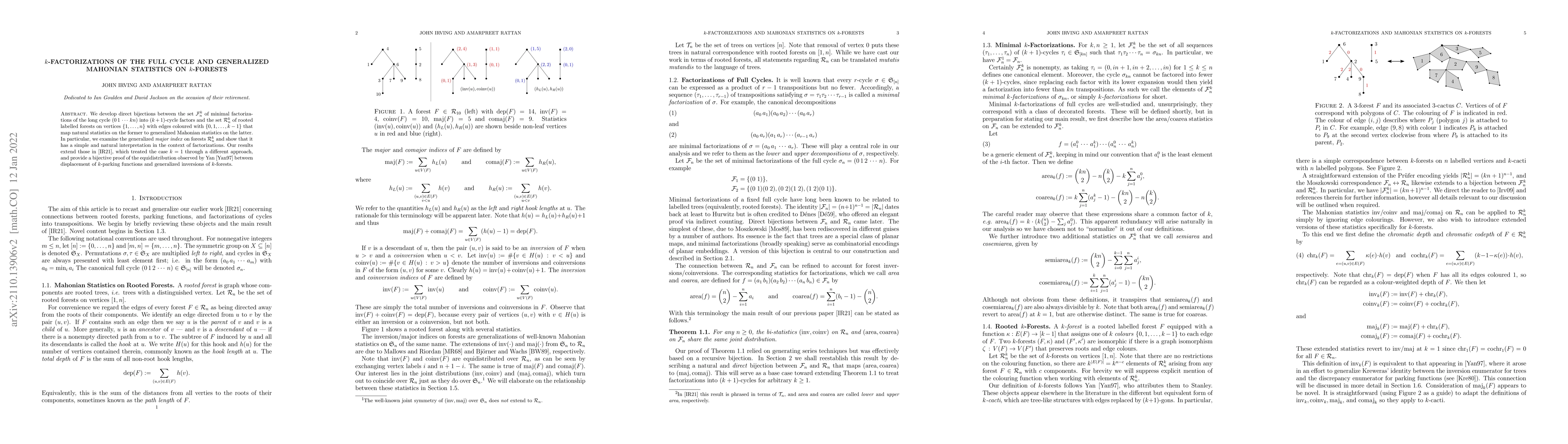 This paper establishes bijections between minimal factorizations of the long cycle into $(k+1)$-cycle factors and rooted labelled forests with coloured edges, mapping natural statistics to generalized Mahonian statistics. It particularly focuses on the generalized major index on forests, providing a bijective proof of equidistribution observed by Yan (1997).