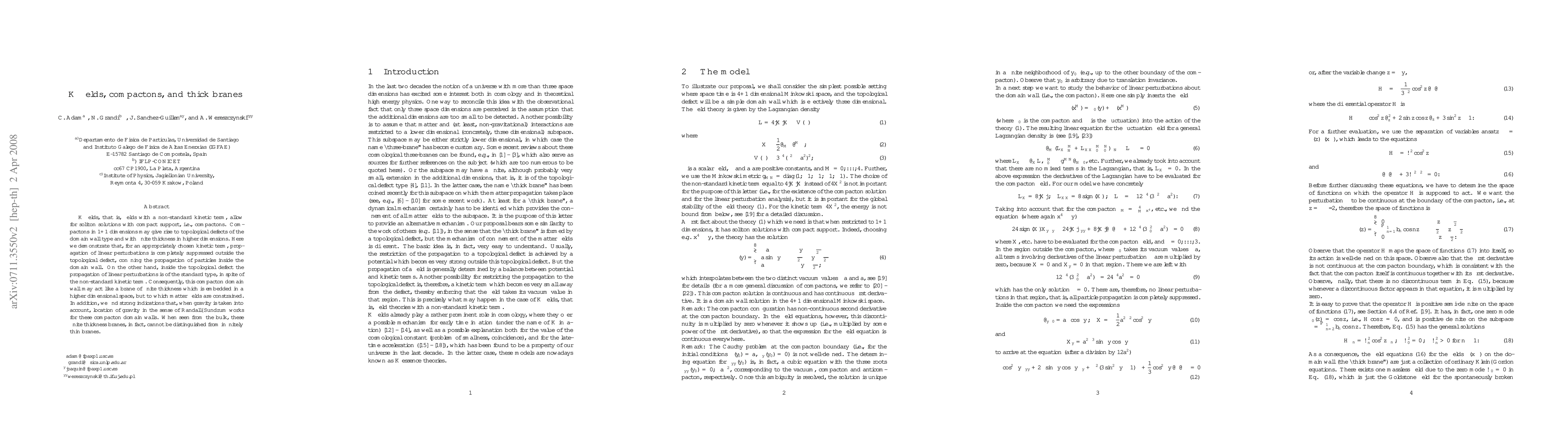This paper explores K fields with non-standard kinetic terms that lead to soliton solutions called compactons. It shows that these compactons can form finite-thickness domain walls in higher dimensions, effectively acting as thick branes that confine particle propagation within the wall while allowing standard propagation inside.
