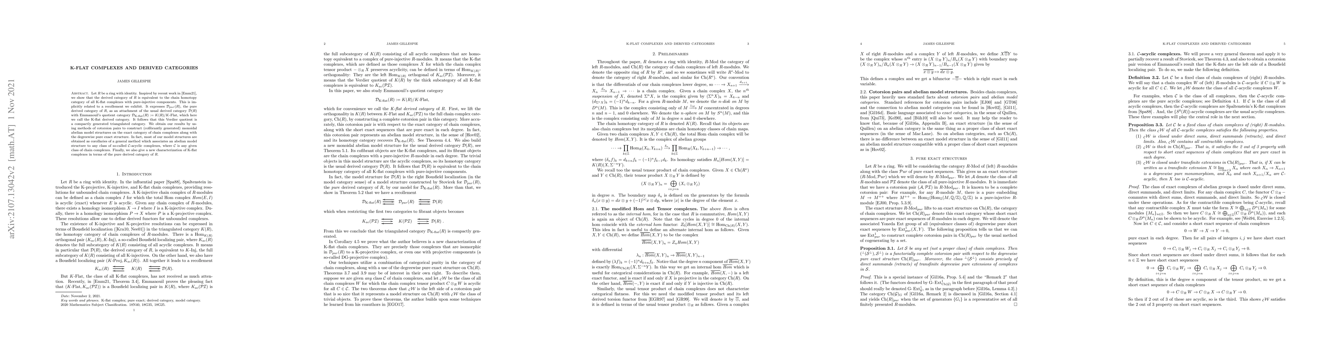 Let $R$ be a ring with identity. Inspired by recent work of Emmanouil, we show that the derived category of $R$ is equivalent to the chain homotopy category of all K-flat complexes with pure-injective components. This is implicitly related to a recollement we exhibit. It expresses $\mathcal{D}_{pur}(R)$, the pure derived category of $R$, as an attachment of the usual derived category $\mathcal{D}(R)$ with Emmanouil's quotient category $\mathcal{D}_{K-flat}(R):=K(R)/K-Flat$, which here we call the K-flat derived category. It follows that this Verdier quotient is a compactly generated triangulated category. We obtain our results by using methods of cotorsion pairs to construct (cofibrantly generated) monoidal abelian model structures on the exact category of chain complexes along with the degreewise pure exact structure. In fact, most of our model structures are obtained as corollaries of a general method which associates an abelian model structure to any class of so-called $\mathcal{C}$-acyclic complexes, where $\mathcal{C}$ is any given class of chain complexes. Finally, we also give a new characterization of K-flat complexes in terms of the pure derived category of $R$.
