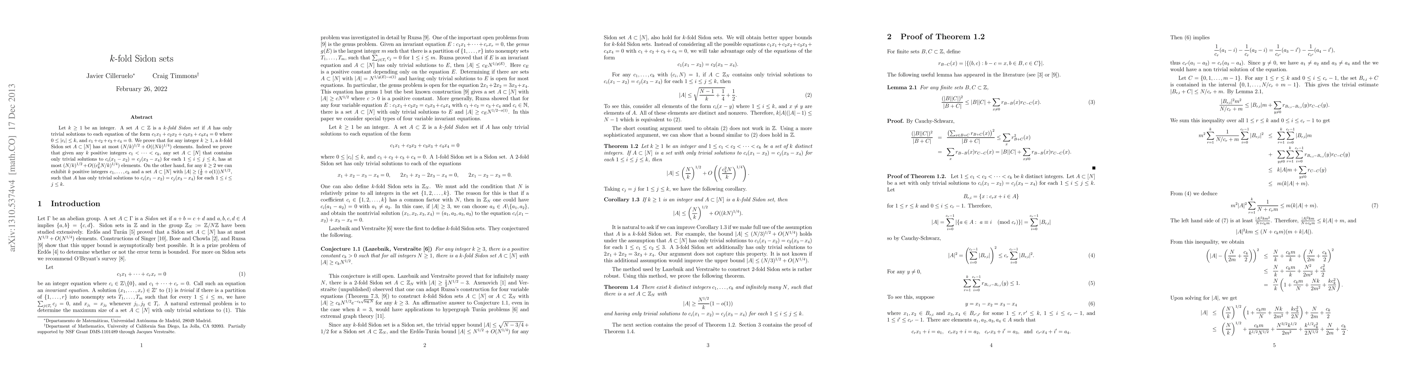 Let $k \geq 1$ be an integer. A set $A \subset \mathbb{Z}$ is a $k$-fold