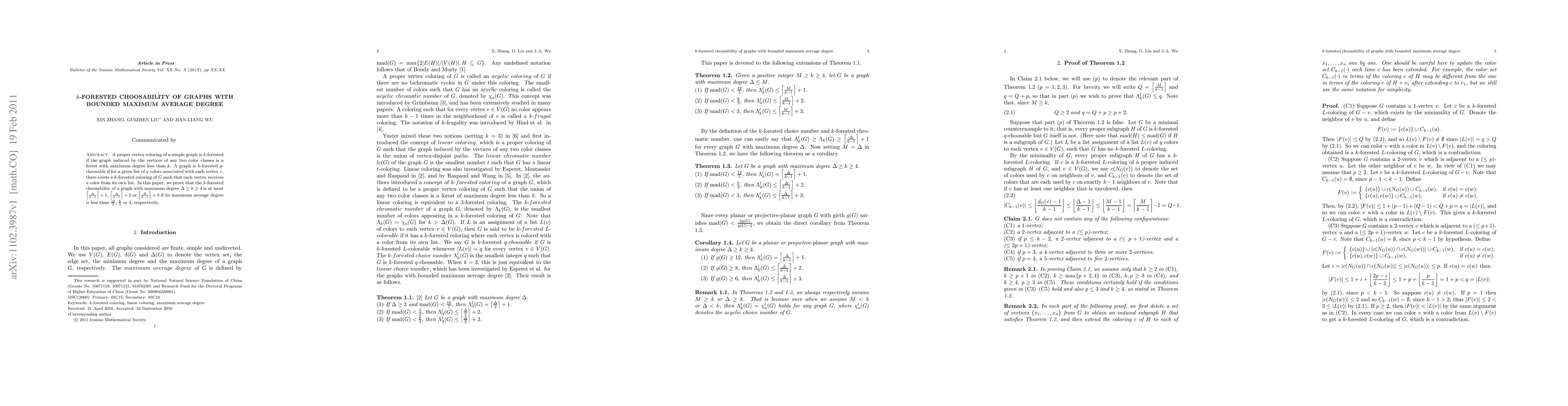 A proper vertex coloring of a simple graph is $k$-forested if the graph induced by the vertices of any two color classes is a forest with maximum degree less than $k$. A graph is $k$-forested $q$-choosable if for a given list of $q$ colors associated with each vertex $v$, there exists a $k$-forested coloring of $G$ such that each vertex receives a color from its own list. In this paper, we prove that the $k$-forested choosability of a graph with maximum degree $\Delta\geq k\geq 4$ is at most $\lceil\frac{\Delta}{k-1}\rceil+1$, $\lceil\frac{\Delta}{k-1}\rceil+2$ or $\lceil\frac{\Delta}{k-1}\rceil+3$ if its maximum average degree is less than 12/5, $8/3 or 3, respectively.