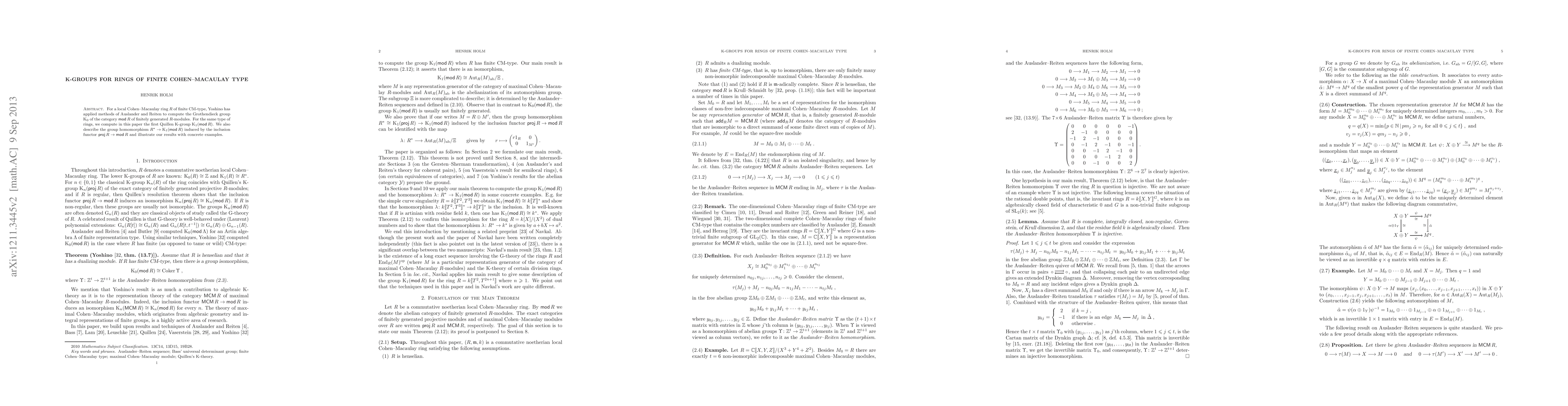 For a local Cohen-Macaulay ring R of finite CM-type, Yoshino has applied methods of Auslander and Reiten to compute the Grothendieck group of the category mod(R) of finitely generated R-modules. For the same type of rings we compute in this paper the first Quillen K-group of mod(R). We also describe the group homomorphism induced by the inclusion of proj(R) into mod(R) and illustrate our results with concrete examples.