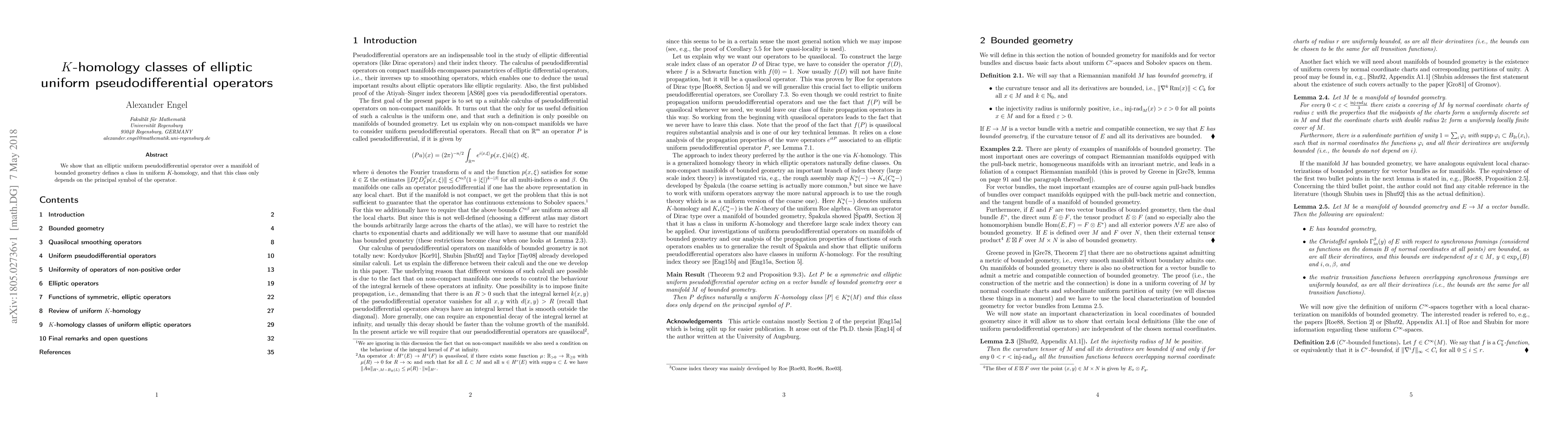 Summary: This paper demonstrates that elliptic uniform pseudodifferential operators on manifolds of bounded geometry correspond to unique classes in uniform K-homology, determined solely by their principal symbols.