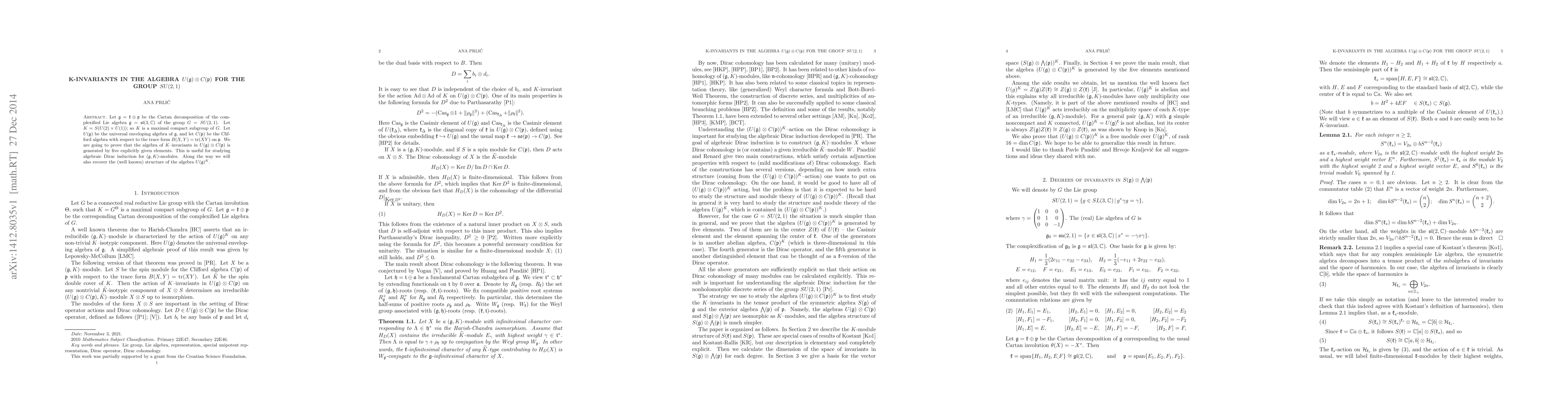 This paper investigates the algebra of K-invariants in the tensor product of the universal enveloping algebra of the complexified Lie algebra of SU(2,1) and the Clifford algebra of its Cartan decomposition, proving it is generated by five specific elements. This result is significant for algebraic Dirac induction studies and also recovers the known structure of the invariant algebra under the maximal compact subgroup.