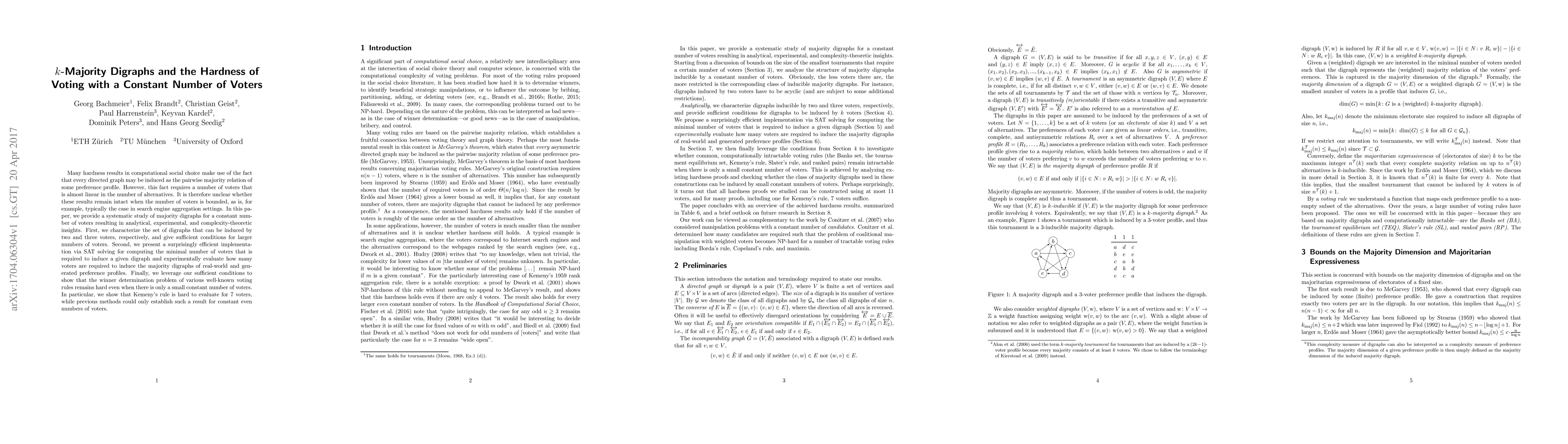 Many hardness results in computational social choice make use of the fact that every directed graph may be induced as the pairwise majority relation of some preference profile. However, this fact requires a number of voters that is almost linear in the number of alternatives. It is therefore unclear whether these results remain intact when the number of voters is bounded, as is, for example, typically the case in search engine aggregation settings. In this paper, we provide a systematic study of majority digraphs for a constant number of voters resulting in analytical, experimental, and complexity-theoretic insights. First, we characterize the set of digraphs that can be induced by two and three voters, respectively, and give sufficient conditions for larger numbers of voters. Second, we present a surprisingly efficient implementation via SAT solving for computing the minimal number of voters that is required to induce a given digraph and experimentally evaluate how many voters are required to induce the majority digraphs of real-world and generated preference profiles. Finally, we leverage our sufficient conditions to show that the winner determination problem of various well-known voting rules remains hard even when there is only a small constant number of voters. In particular, we show that Kemeny's rule is hard to evaluate for 7 voters, while previous methods could only establish such a result for constant even numbers of voters.