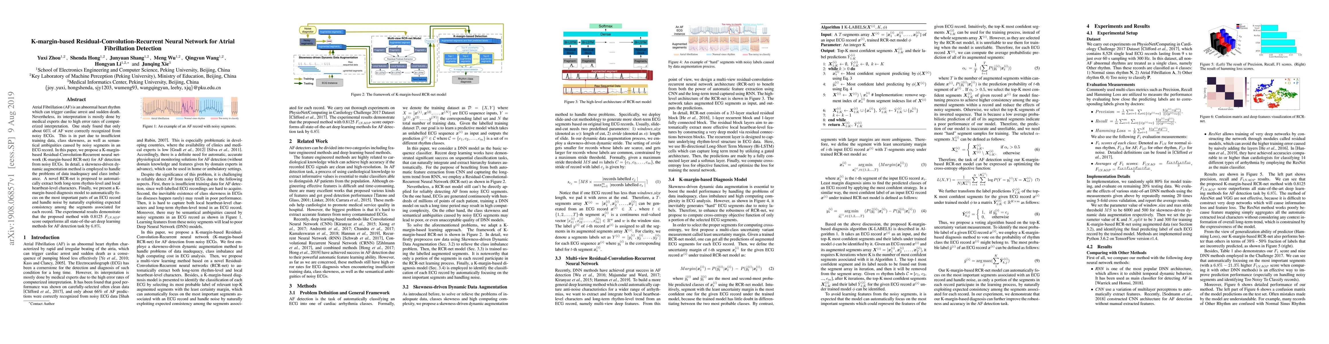 This paper proposes a K-margin-based Residual-Convolution-Recurrent neural network (RCR-net) for detecting Atrial Fibrillation (AF) from noisy ECGs, employing dynamic augmentation to address data imbalance and a K-margin diagnosis model to focus on critical ECG segments, achieving superior performance with an F1NAOP score of 0.8125.