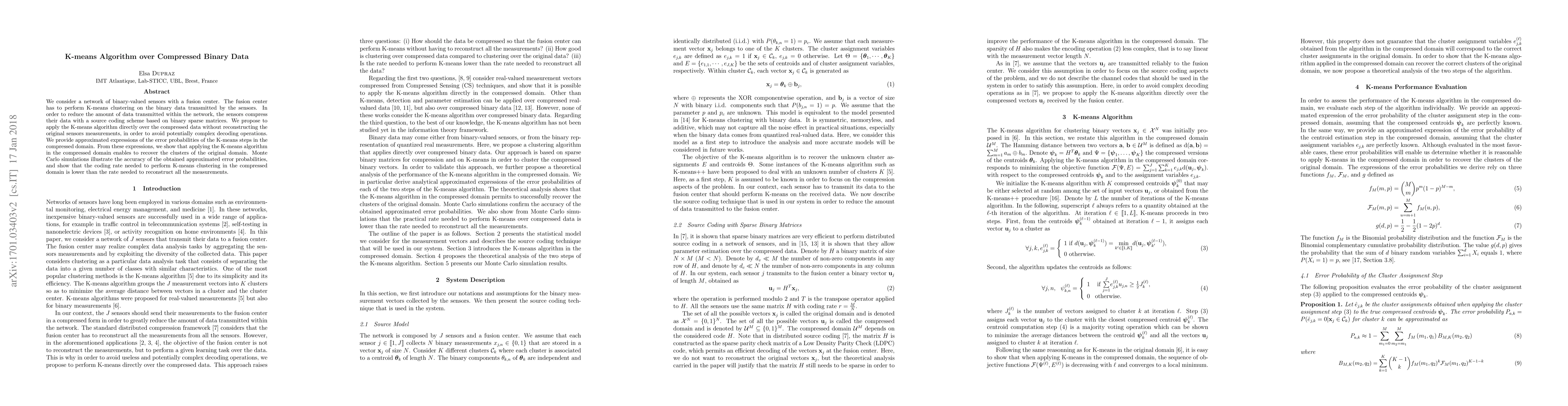 Researchers propose using K-means clustering on compressed binary data to reduce network transmission rates, showing that this method can accurately recover original clusters with lower data transmission requirements.
