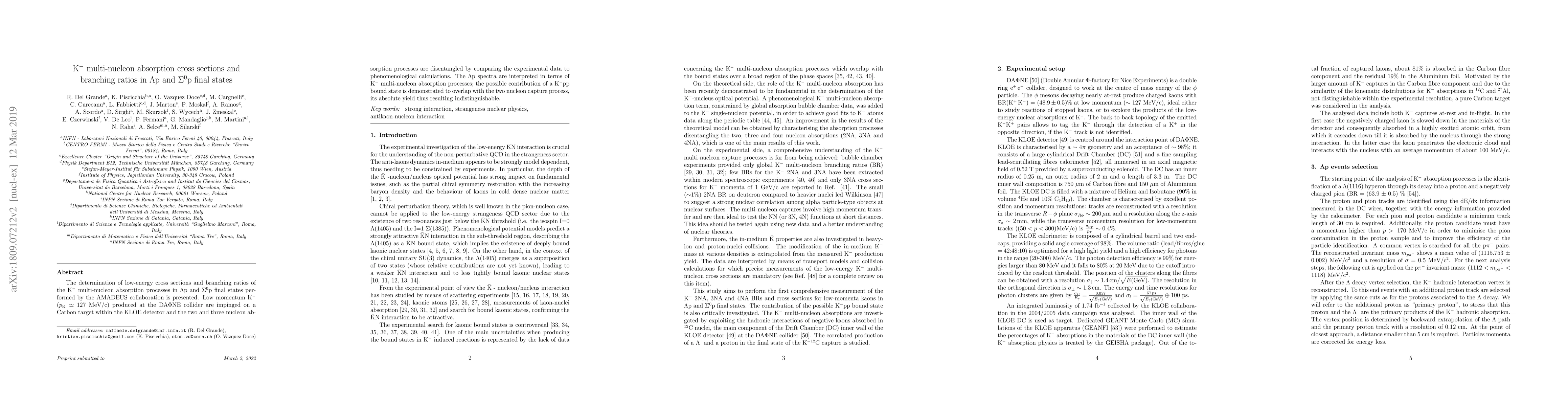 The determination of low-energy cross sections and branching ratios of the K$^-$ multi-nucleon absorption processes in $\Lambda$p and $\Sigma^0$p final states performed by the AMADEUS collaboration is presented. Low momentum K$^-$ ($p_\mathrm{K} \simeq$ 127 MeV/c) produced at the DA$\Phi$NE collider are impinged on a Carbon target within the KLOE detector and the two and three nucleon absorption processes are disentangled by comparing the experimental data to phenomenological calculations. The $\Lambda$p spectra are interpreted in terms of K$^-$ multi-nucleon absorption processes; the possible contribution of a K$^-$pp bound state is demonstrated to overlap with the two nucleon capture process, its absolute yield thus resulting indistinguishable.