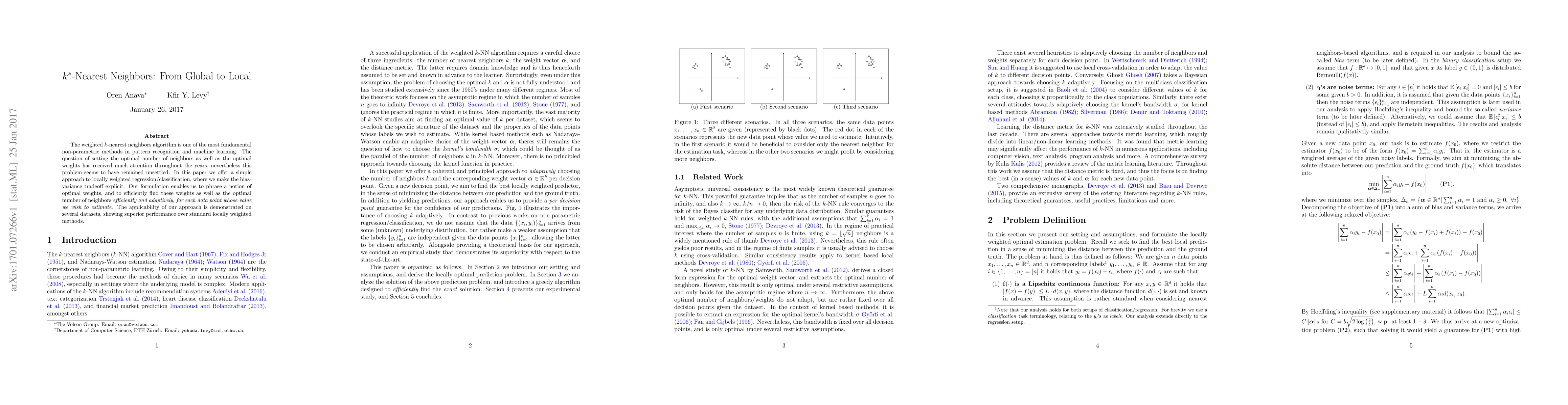 The weighted k-nearest neighbors algorithm is one of the most fundamental non-parametric methods in pattern recognition and machine learning. The question of setting the optimal number of neighbors as well as the optimal weights has received much attention throughout the years, nevertheless this problem seems to have remained unsettled. In this paper we offer a simple approach to locally weighted regression/classification, where we make the bias-variance tradeoff explicit. Our formulation enables us to phrase a notion of optimal weights, and to efficiently find these weights as well as the optimal number of neighbors efficiently and adaptively, for each data point whose value we wish to estimate. The applicability of our approach is demonstrated on several datasets, showing superior performance over standard locally weighted methods.