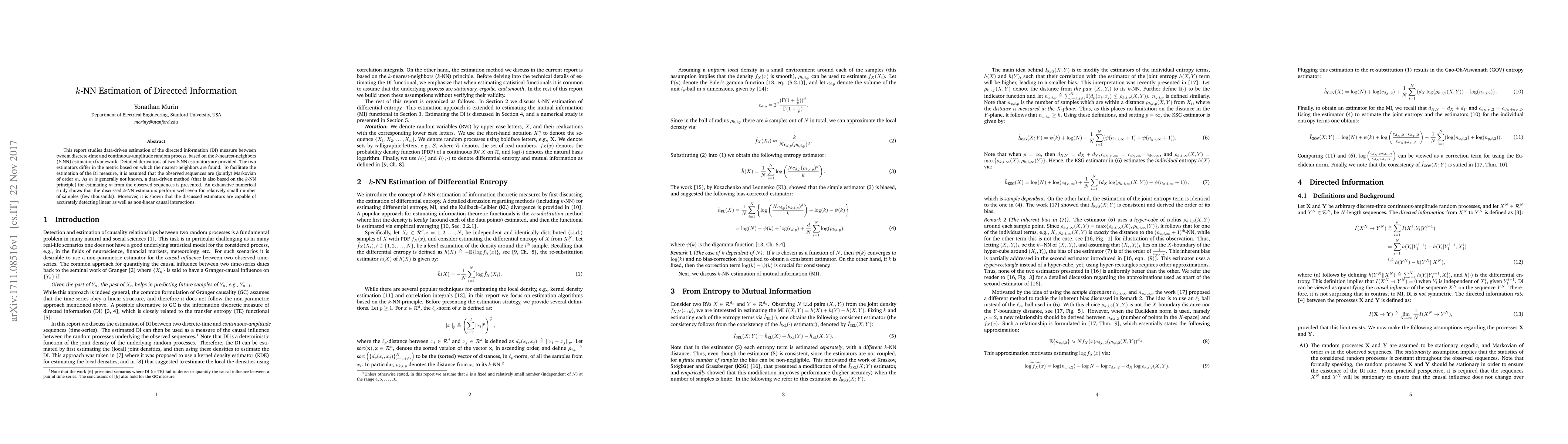 This paper presents a new method for estimating directed information between random processes using k-nearest neighbors (k-NN) estimation, which performs well even with small sample sizes and accurately detects linear and non-linear causal interactions.