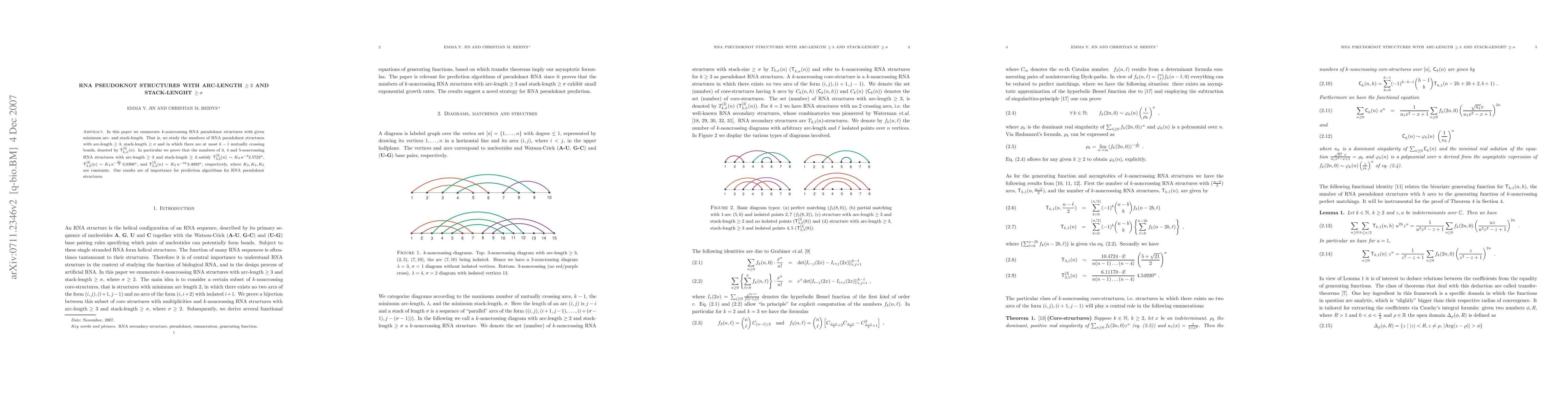 A combinatorial approach was used to analyze RNA structures with pseudoknots