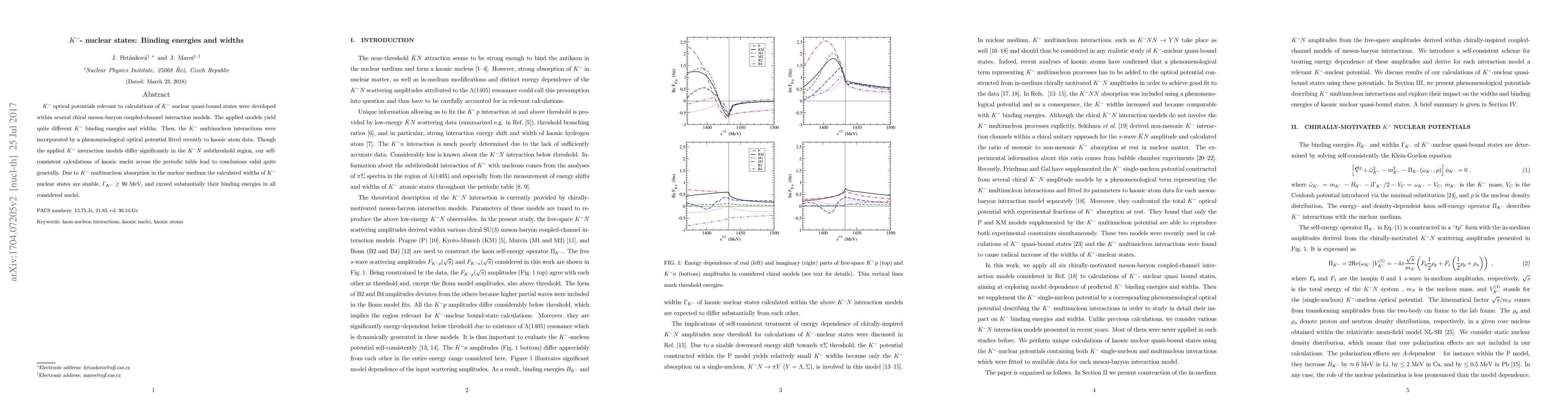 $K^-$ optical potentials relevant to calculations of $K^-$ nuclear quasi-bound states were developed within several chiral meson-baryon coupled-channel interaction models. The applied models yield quite different $K^-$ binding energies and widths. Then, the $K^-$ multinucleon interactions were incorporated by a phenomenological optical potential fitted recently to kaonic atom data. Though the applied $K^-$ interaction models differ significantly in the $K^-N$ subthreshold region, our self-consistent calculations of kaonic nuclei across the periodic table lead to conclusions valid quite generally. Due to $K^-$ multinucleon absorption in the nuclear medium the calculated widths of $K^-$ nuclear states are sizable, $\Gamma_{K^-} \geq 90$ MeV, and exceed substantially their binding energies in all considered nuclei.