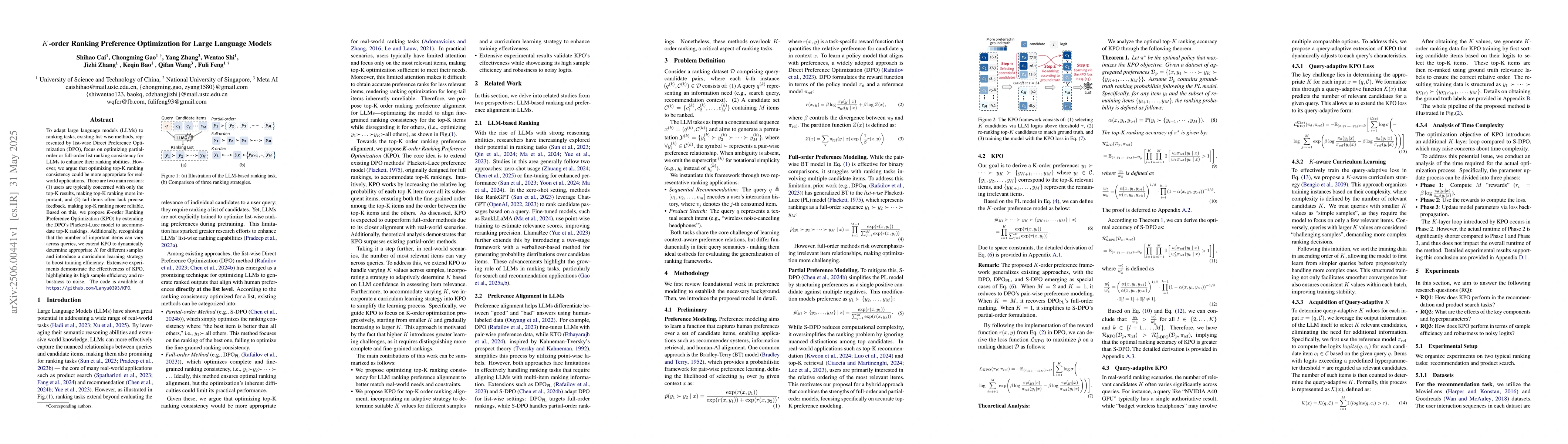 This research paper proposes a new optimization method called K-order Ranking Preference Optimization (KPO) to improve large language models' top-K ranking performance, achieving high sample efficiency and robustness.