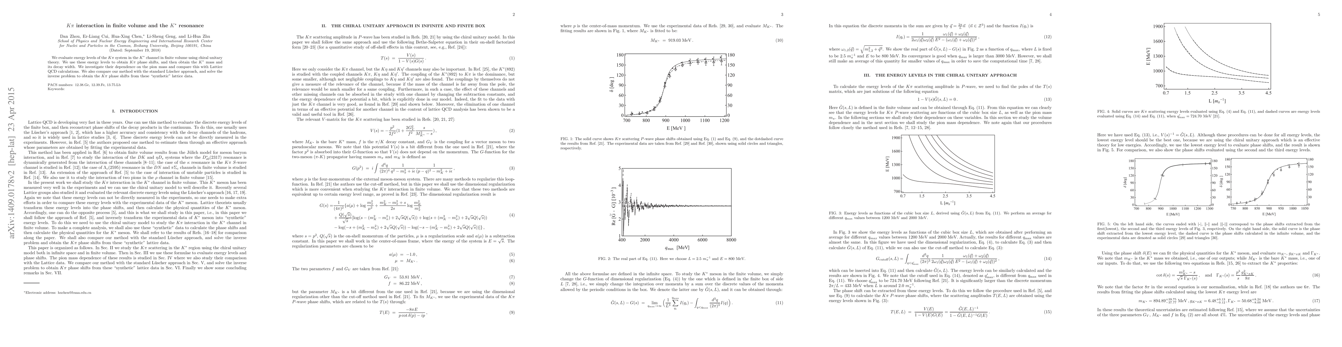 Researchers used chiral unitary theory to study the K-pi system in finite volume, obtaining phase shifts, mass, and decay width of the K* resonance, which they compared with Lattice QCD calculations and other methods.