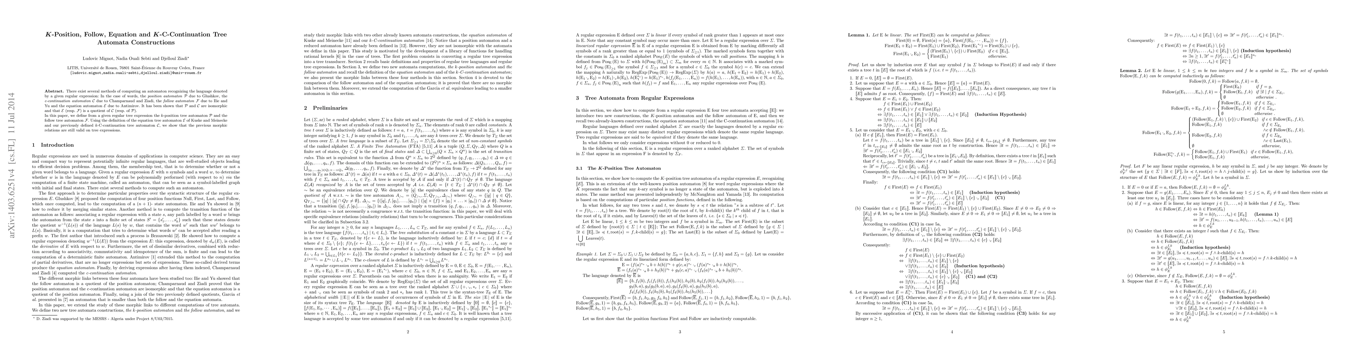 This paper introduces k-position and follow tree automata from regular tree expressions and demonstrates that these constructions maintain the same morphic relations as their word counterparts, including the relationships between position, continuation, and equation automata.