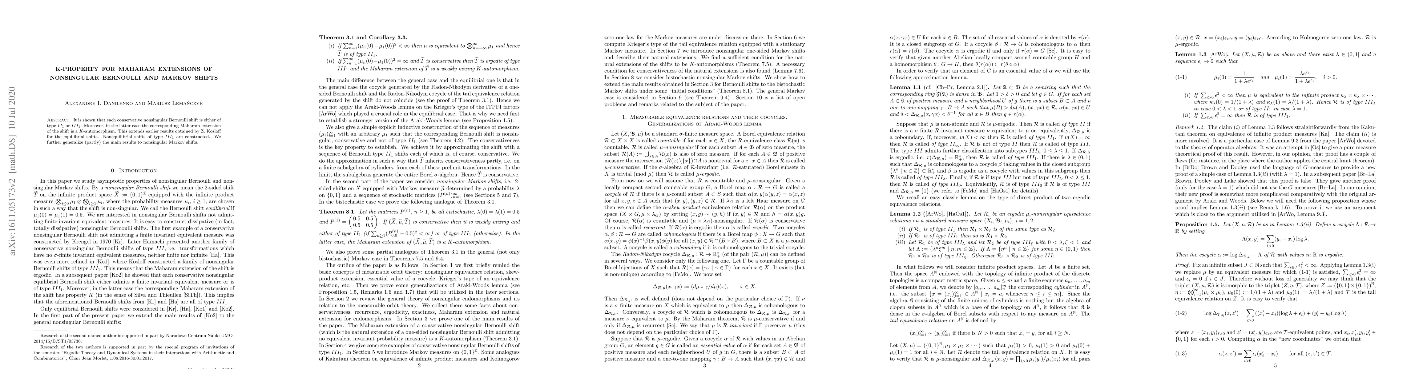 The paper demonstrates that nonsingular Bernoulli shifts are either $II_1$ or $III_1$ type, with Maharam extensions of $III_1$ shifts being $K$-automorphisms. It also constructs nonequilibrial type $III_1$ shifts and extends some results to nonsingular Markov shifts.