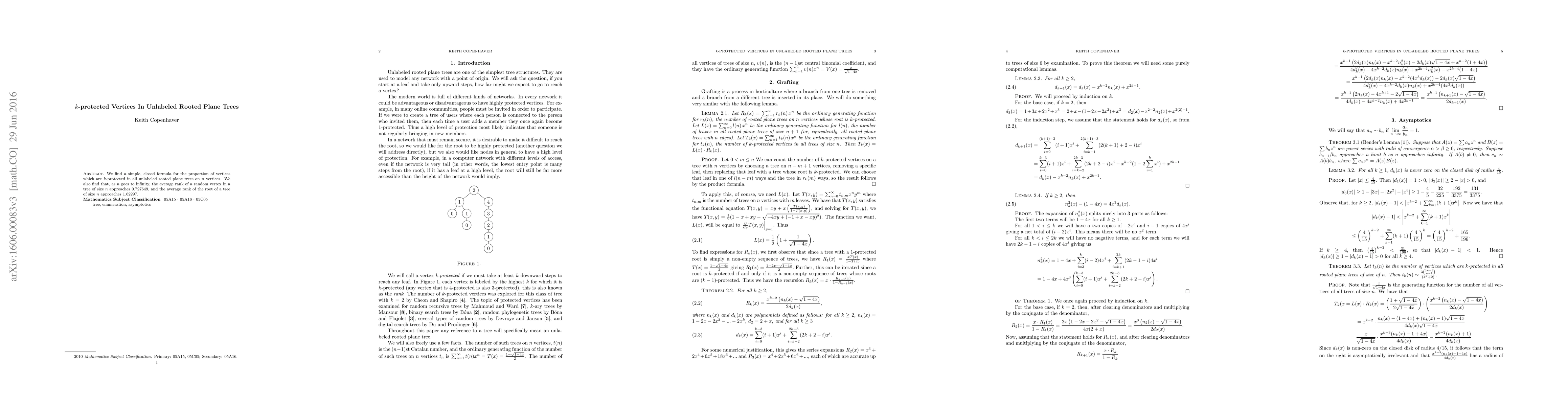 The paper introduces a method using generating functions and functional equations to count $k$-protected vertices in unlabeled rooted plane trees, providing a closed-form solution.