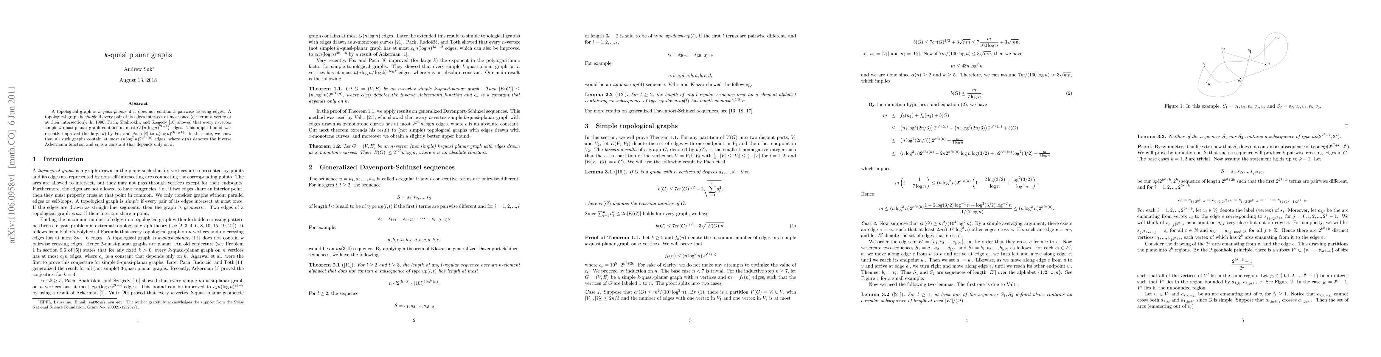 This paper investigates $k$-quasi-planar graphs, which are topological graphs with no $k$ pairwise crossing edges. The authors improve the upper bound on the number of edges in $n$-vertex simple $k$-quasi-planar graphs to $(n\log^2n)2^{\alpha^{c_k}(n)}$, where $\alpha(n)$ is the inverse Ackermann function and $c_k$ is a constant dependent on $k$.