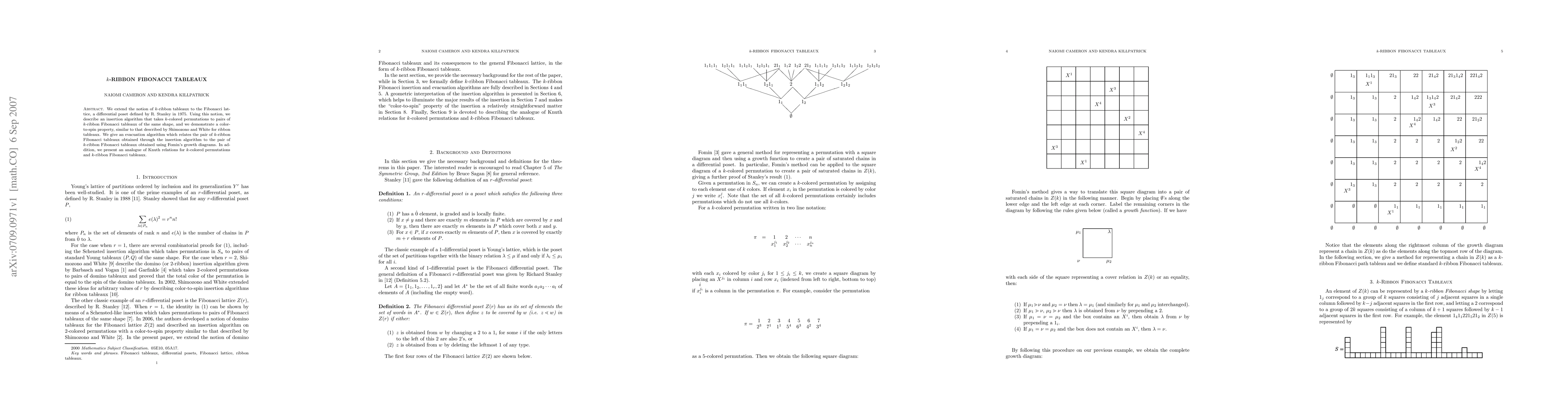 This paper extends $k$-ribbon tableaux to the Fibonacci lattice, introducing an insertion algorithm that maps $k$-colored permutations to pairs of $k$-ribbon Fibonacci tableaux. It also presents an evacuation algorithm and an analogue of Knuth relations for these tableaux.