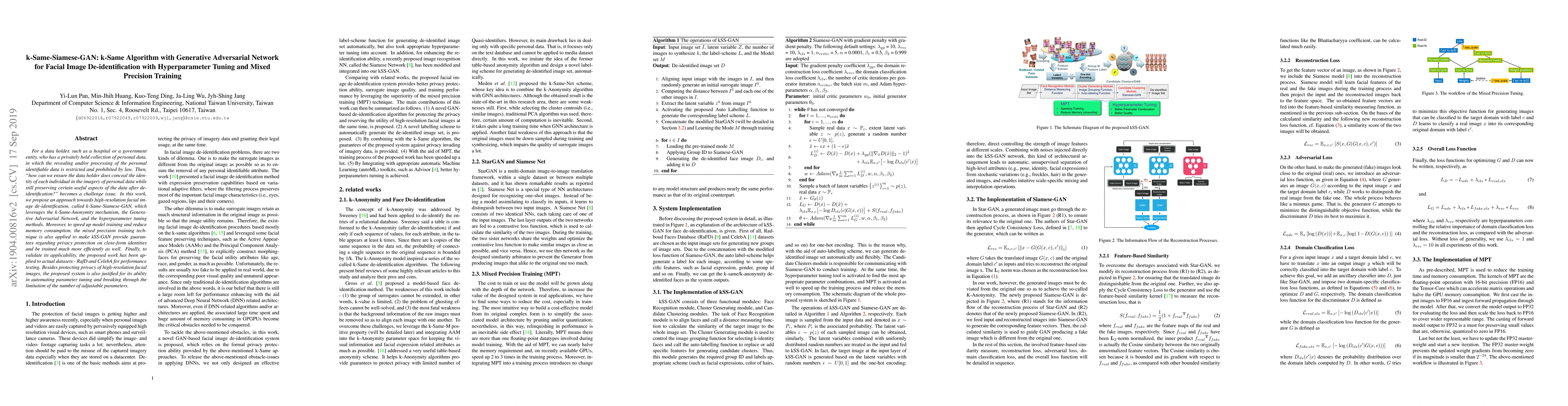 The paper proposes k-Same-Siamese-GAN for high-resolution facial image de-identification, combining k-Same-Anonymity, GANs, hyperparameter tuning, and mixed precision training to ensure privacy while preserving data utility. The method is validated on RafD and CelebA datasets, demonstrating efficient training and privacy protection.