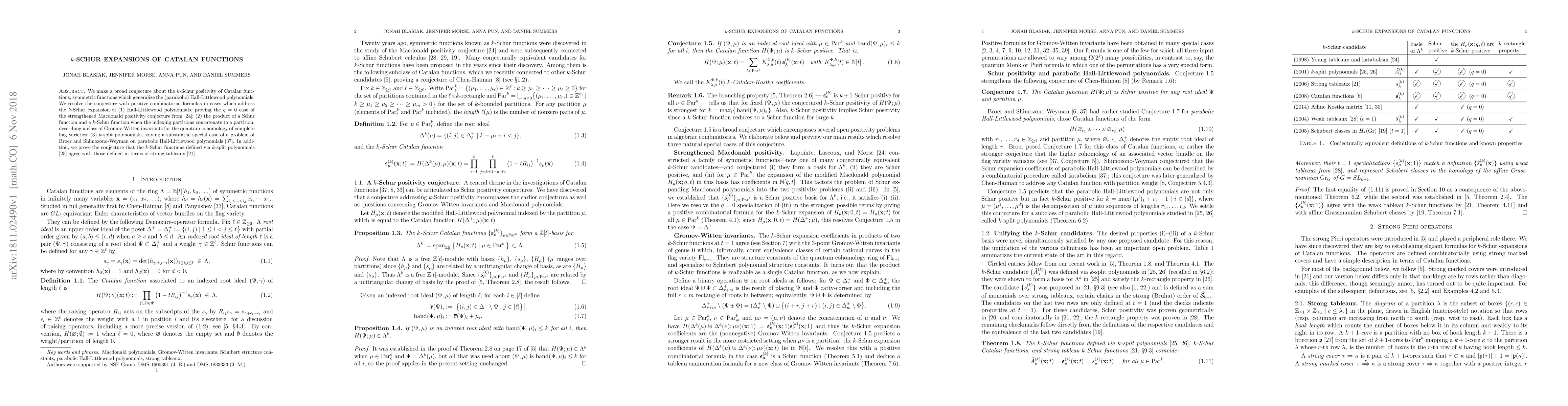 The paper introduces and develops the theory of k-Schur expansions of Catalan functions, providing positive combinatorial formulas for specific cases and proving several important conjectures.