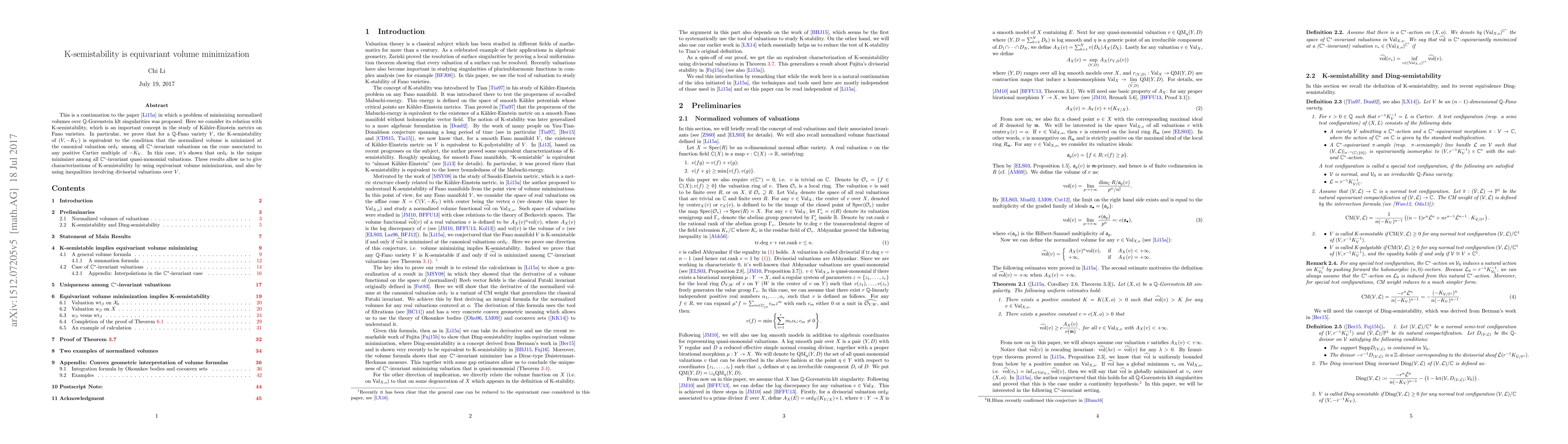 This is a continuation to the paper [arXiv:1511.08164] in which a problem of minimizing normalized volumes over $\mathbb{Q}$-Gorenstein klt singularities was proposed. Here we consider its relation with K-semistability, which is an important concept in the study of K\"{a}hler-Einstein metrics on Fano varieties. In particular, we prove that for a $\mathbb{Q}$-Fano variety $V$, the K-semistability of $(V, -K_V)$ is equivalent to the condition that the normalized volume is minimized at the canonical valuation ${\rm ord}_V$ among all $\mathbb{C}^*$-invariant valuations on the cone associated to any positive Cartier multiple of $-K_V$. In this case, it's shown that ${\rm ord}_V$ is the unique minimizer among all $\mathbb{C}^*$-invariant quasi-monomial valuations. These results allow us to give characterizations of K-semistability by using equivariant volume minimization, and also by using inequalities involving divisorial valuations over $V$.