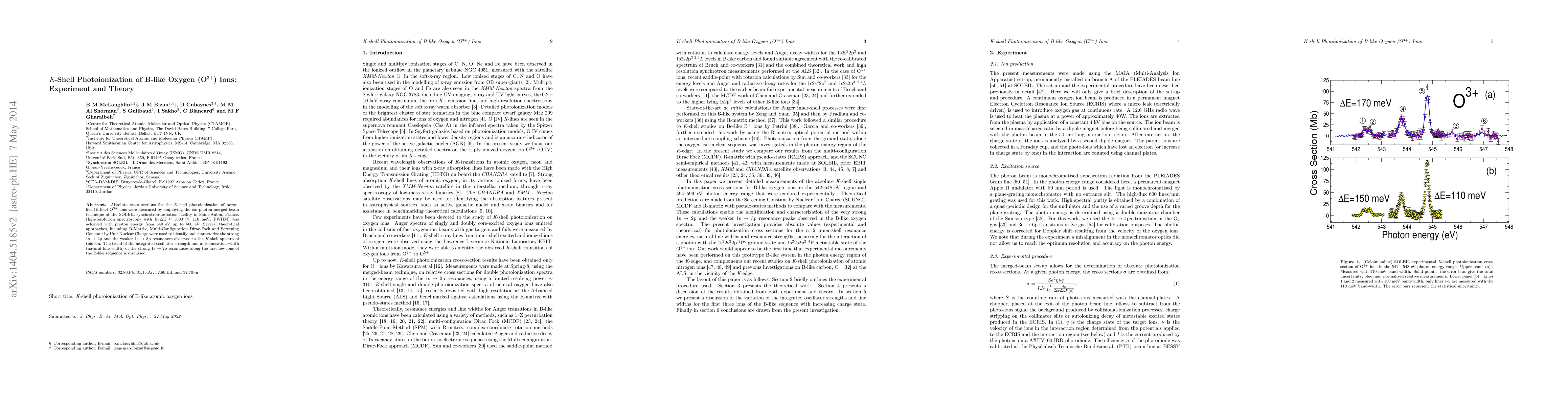 This paper reports on the K-shell photoionization of B-like O$^{3+}$ ions, measuring absolute cross sections using merged-beam techniques and high-resolution spectroscopy. Theoretical methods were employed to analyze observed resonances, discussing the trends in oscillator strength and autoionization width for the 1s $\rightarrow$ 2p transitions.