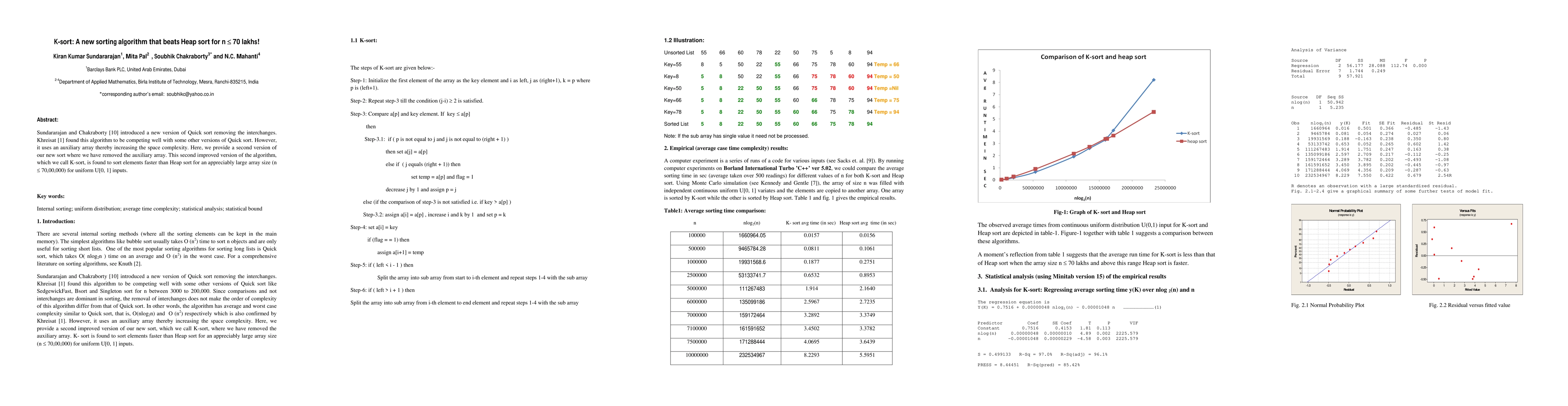 Sundararajan and Chakraborty's K-sort, an improved version of Quick sort without auxiliary arrays, outperforms Heap sort for sorting up to 70 lakhs elements, especially for uniformly distributed inputs. This enhanced efficiency addresses space complexity concerns of the original algorithm.