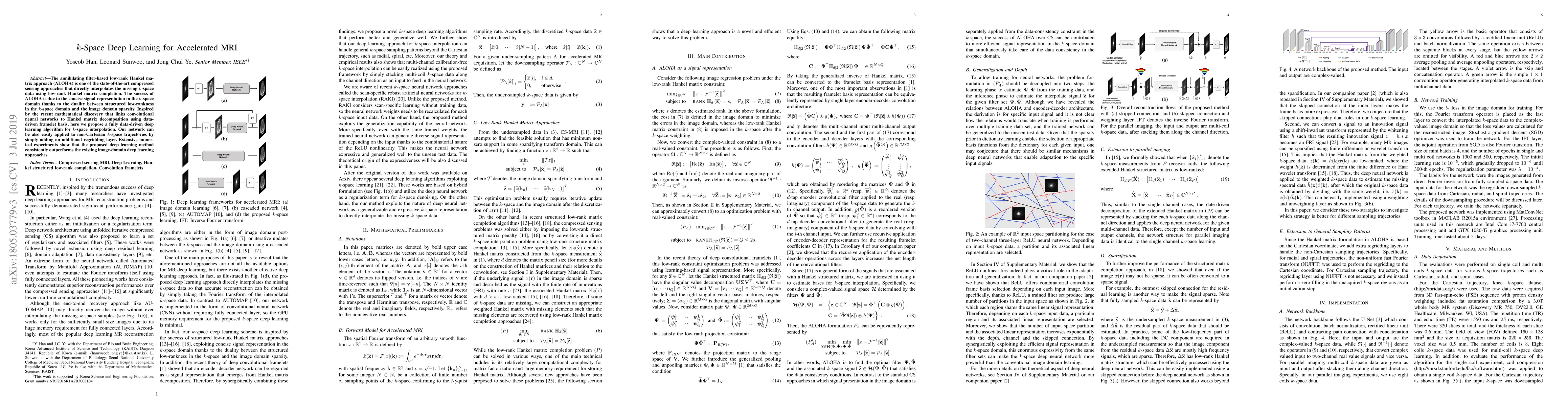 This paper proposes a deep learning algorithm for accelerated MRI by interpolating missing k-space data using a data-driven approach linked to Hankel matrix decomposition. The method outperforms existing image-domain deep learning techniques, demonstrating superior performance in numerical experiments.