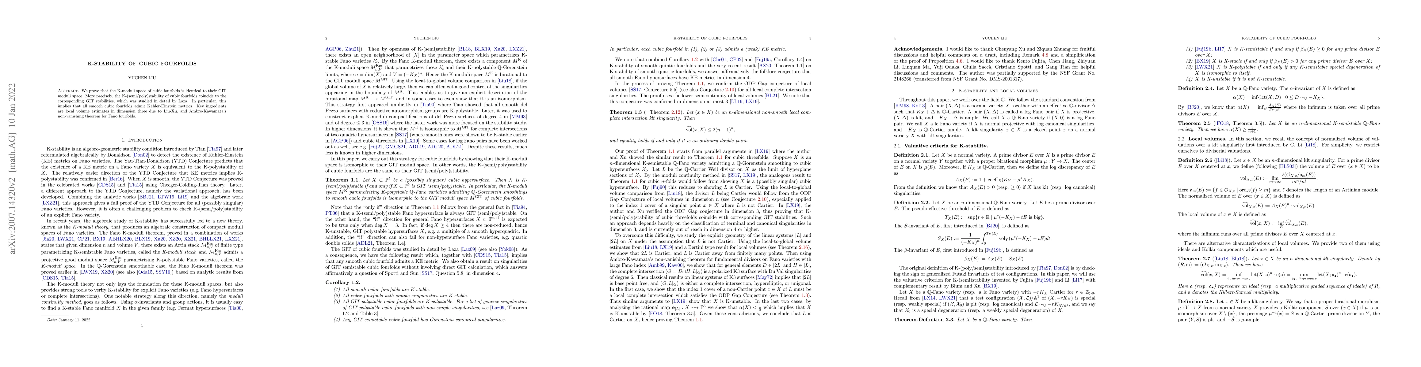 This research demonstrates that the K-moduli space of cubic fourfolds matches their GIT moduli space, establishing that K-stability and GIT stability are equivalent for these objects. This finding supports the existence of Kähler-Einstein metrics on all smooth cubic fourfolds, leveraging local volume estimates and non-vanishing theorems.